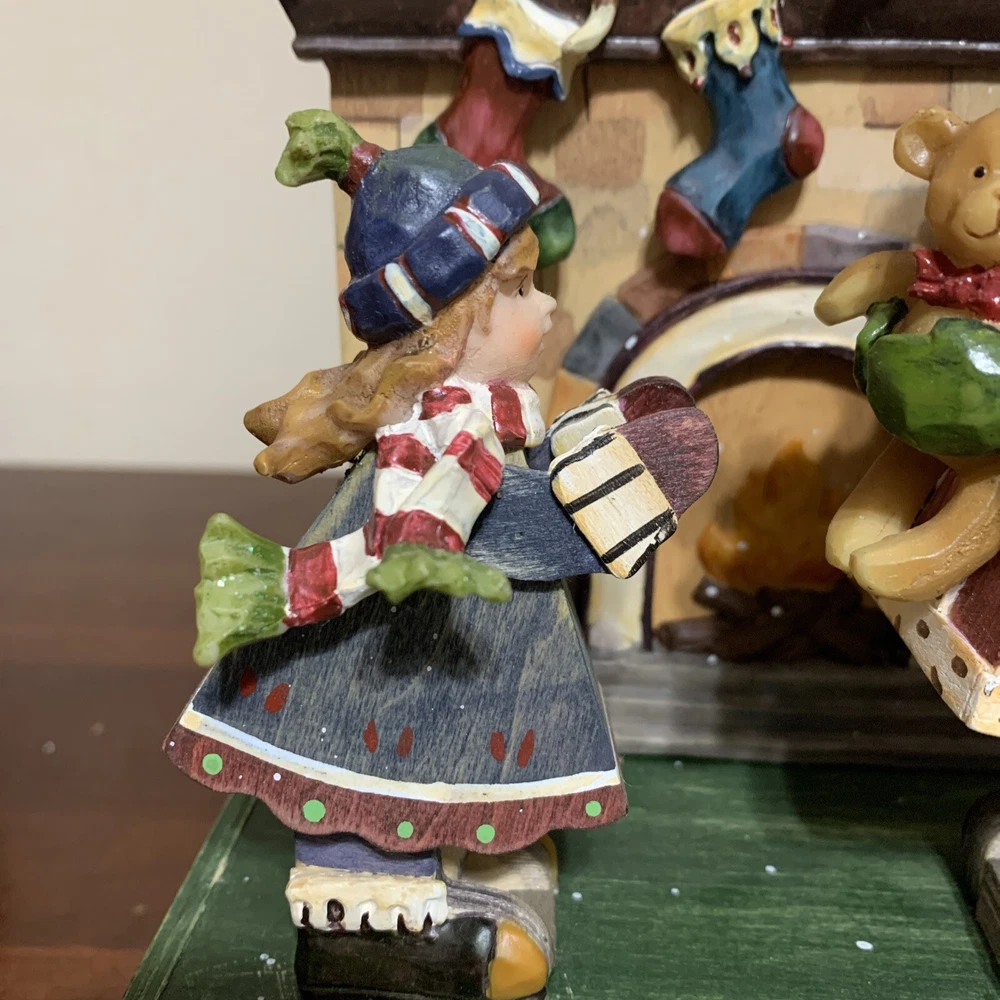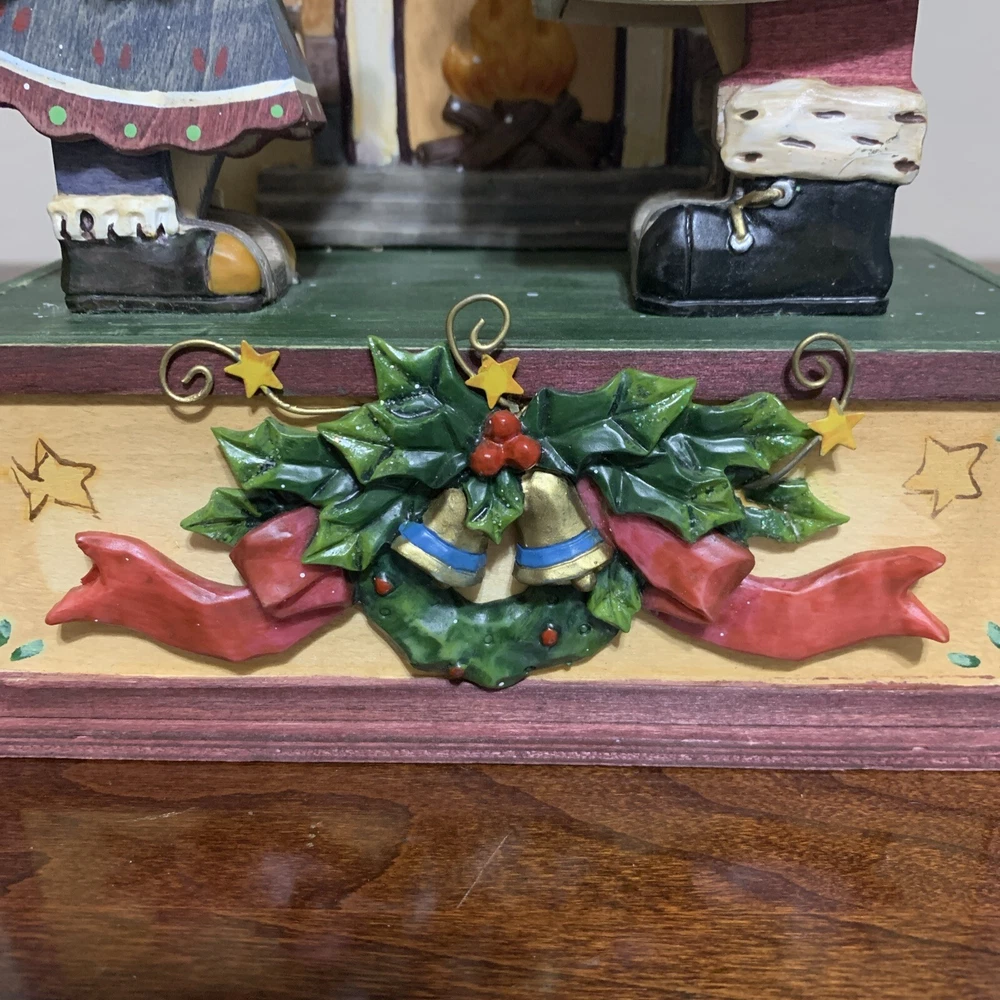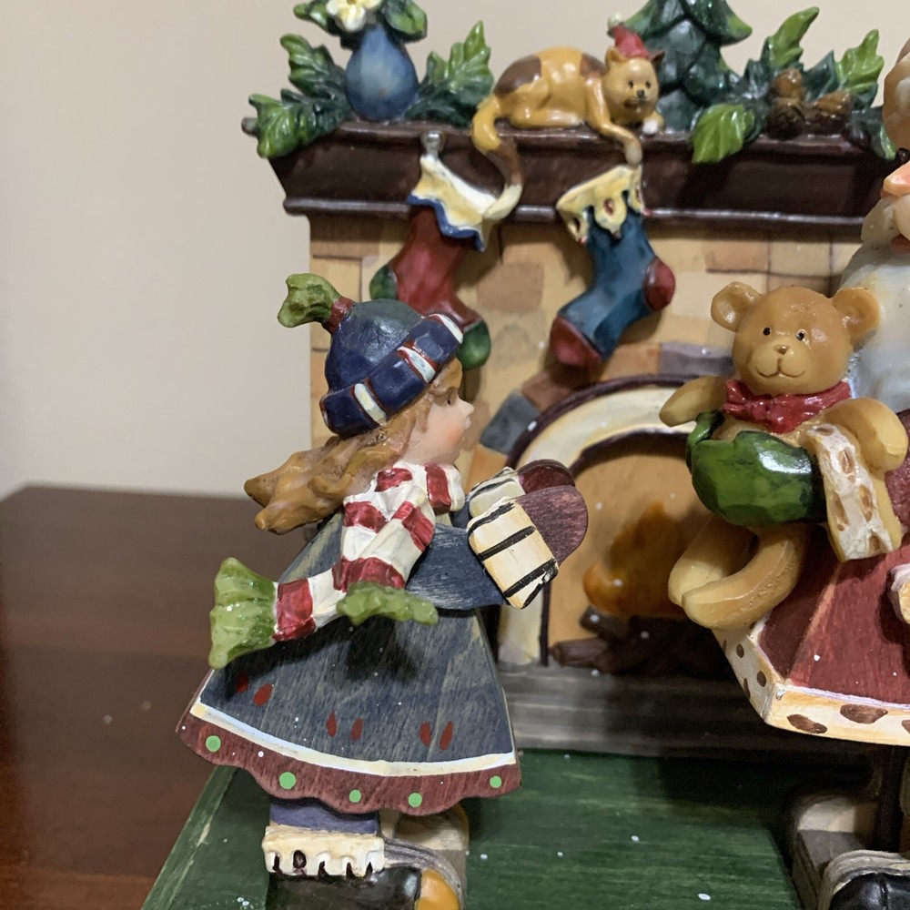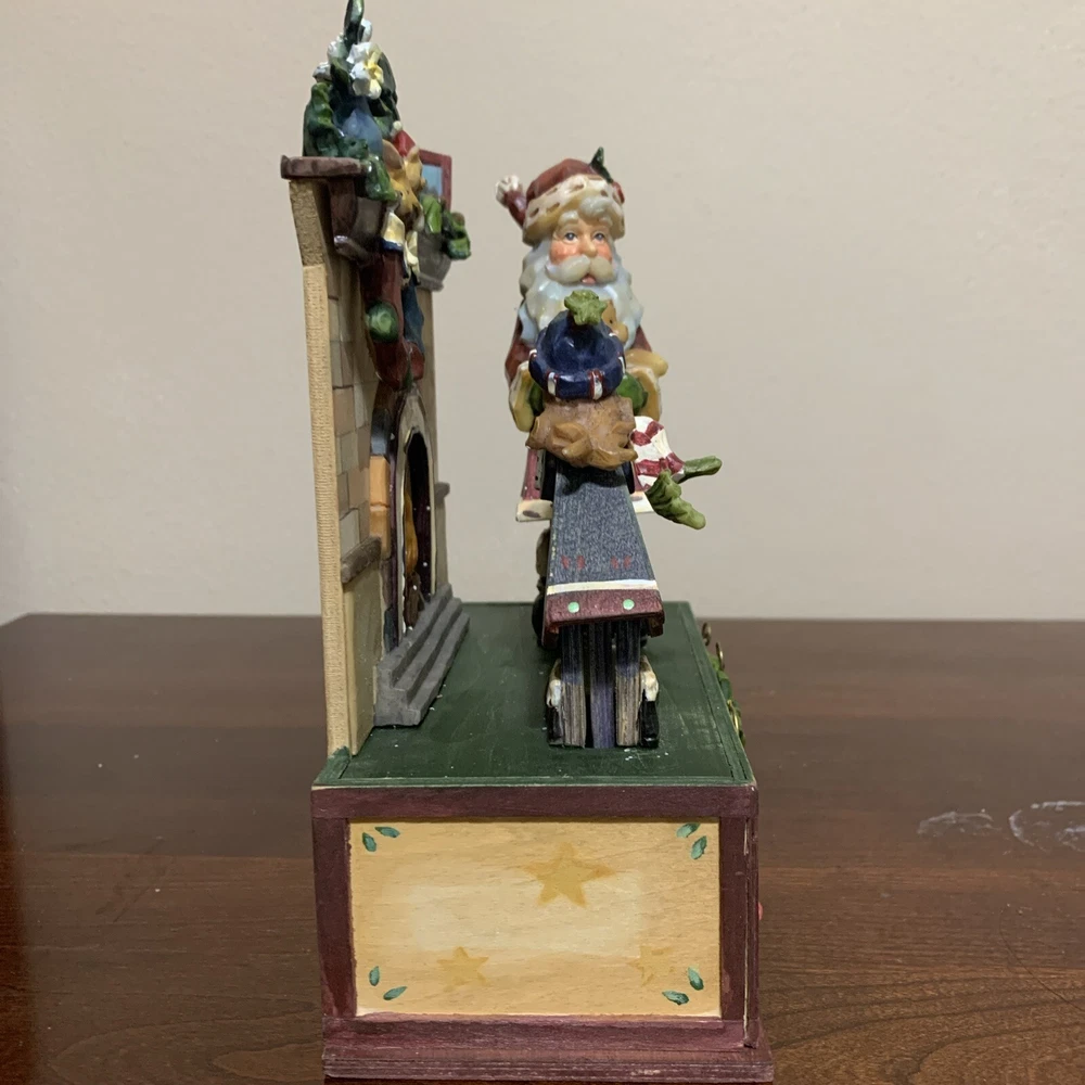 Studio Nova Holiday Whimsical Wind-Up Animated Music Box. Adorable animated music box, Santa handing a little girl a package. Excellent Condition. The only thing I see wrong is the star on top of the tree on the mantle is missing. See Photos For Details. Smoke free, pet free home.