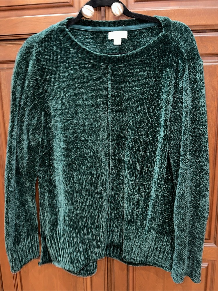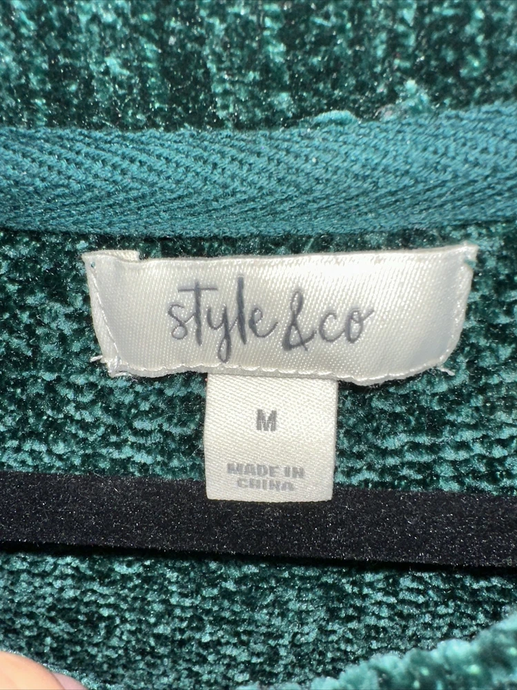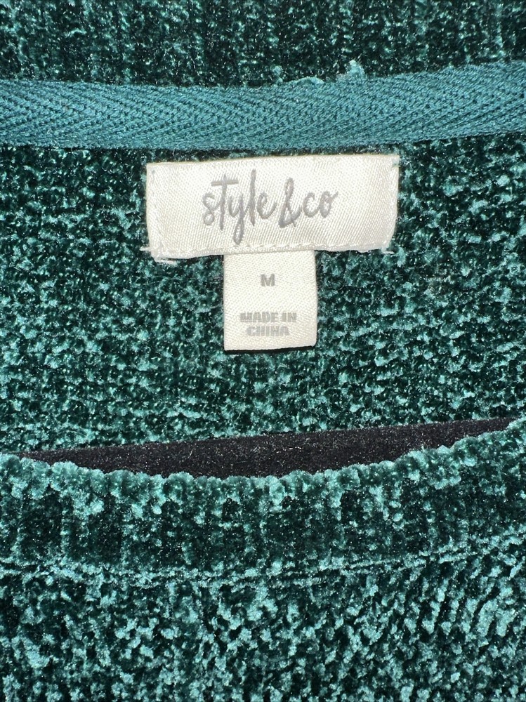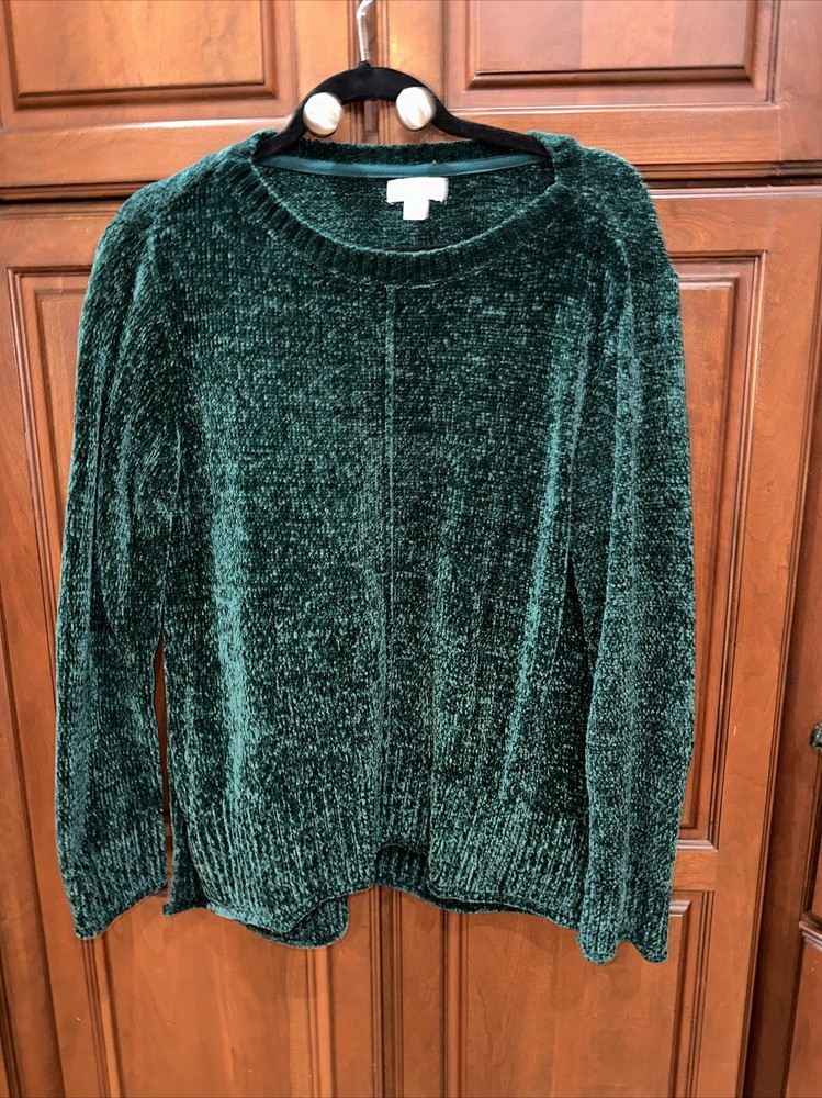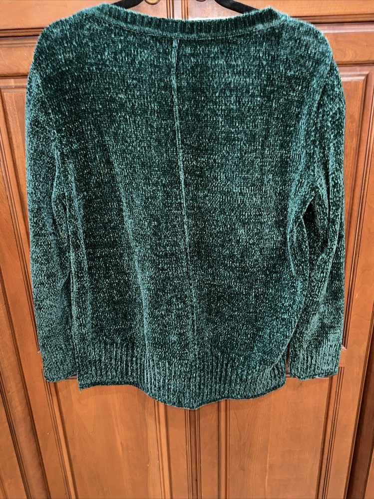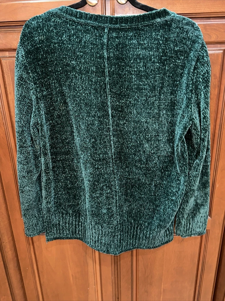 Style & Co Womens M Hunter Green Chenille Crew Neck Cozy Pullover Sweater EUC