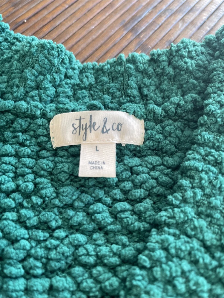 Slip into a cozy embrace with the Style & Co. Boucle V-Neck Sweater, a perfect blend of comfort and style for your fall, winter, or spring wardrobe. This sweater features a classic pullover design and a soft V-neck that invites a touch of elegance to your casual outings. easy match with a variety of bottoms. Crafted from a breathable blend of 81% polyester and 19% acrylic, Long sleeves, machine washable for easy care, this garment is as practical as it is stylish. Tag size L Excellent Preowned Condition. Please View All The Photos As They Are Part Of Description. Measurements ( shoulder/chest/length/sleeve ) shown in the photos. C855