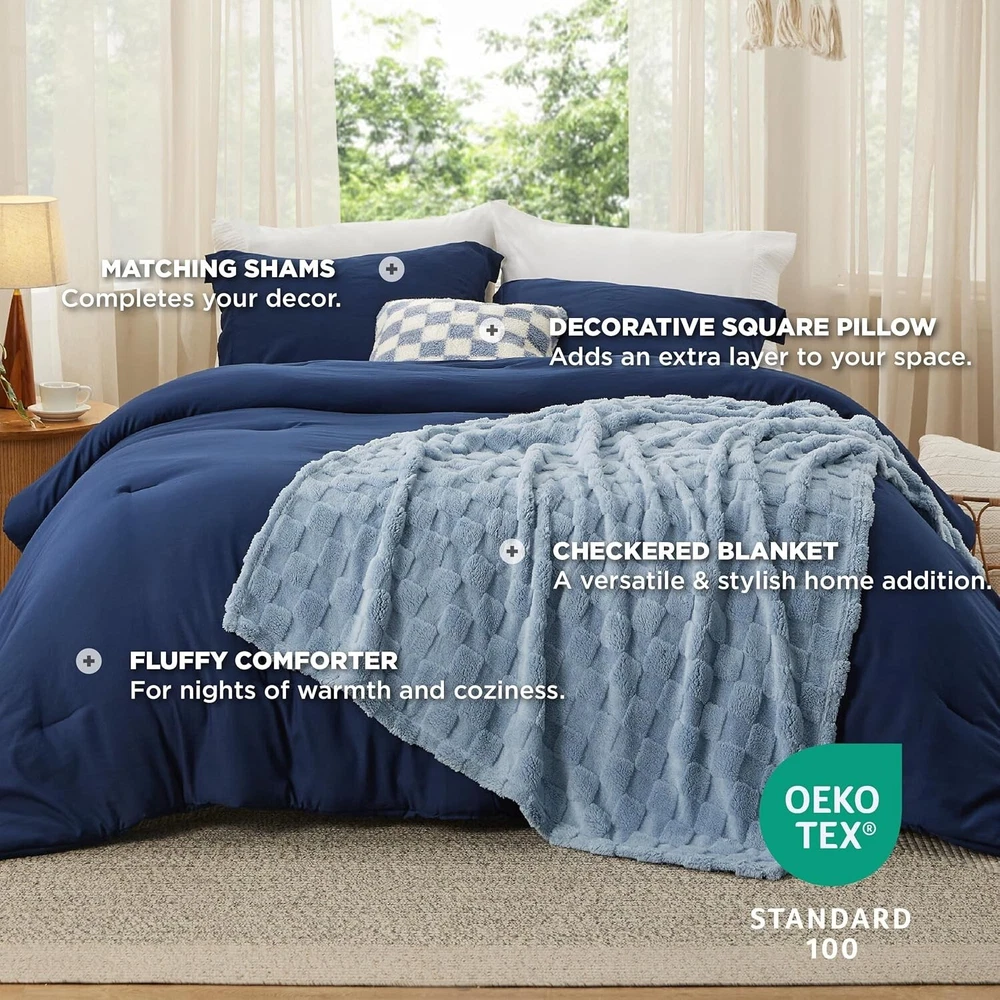 Stylish 5-Piece Navy Plaid Comforter Set with Decorative Throw for Cozy Living ‹ › ‹ › ‹ › ‹ › ‹ › ‹ › ‹ › ‹ › ‹ › ‹ › ‹ › Stylish 5-Piece Navy Plaid Comforter Set Coziness and Timeless Elegance : This sophisticated comforter set is the epitome of modern minimalist design, featuring a stunning navy plaid pattern that seamlessly elevates any space. Coupled with a complementary throw blanket and a matching square pillow with sham, it becomes a delightful addition to your home decor or an exquisite Christmas gift for her. Features: Inclusions: This full comforter set dons a 1 comforter (82" x 86"), 2 pillow shams (20" x 26" + 2"), 1 decorative pillow (18" x 18"), and a blanket (50" x 60"). Blanket Included: Cozy up in style with a matching throw blanket that adds charm to your living space, perfect for cuddling beyond the bedroom. Certified for Safety: Rest easy knowing that your comforter set is Standard 100 by OEKO-TEX certified, ensuring it meets strict safety standards against harmful chemicals. Easy to Care: Conveniently machine washable in cold water on a gentle cycle, with tumble drying on low for a like-new appearance. Benefits: Transform your bedroom or living space with elegance and charm. Versatile enough to suit various styles and occasions. Perfect as a thoughtful gift for women during the festive season. Designed for both comfort and ease of maintenance. Substantial enough to provide warmth without compromising on style. Why choose our Stylish Comforter Set? Enhance your home with this Stylish 5-Piece Navy Plaid Comforter Set that harmonizes comfort with a contemporary aesthetic. Ideal as a gift or a self-purchase, its safety credentials guarantee a responsible choice for your household. Surprise someone special this Christmas with the gift of style and comfort, as they wrap themselves in joy and warmth. Don't miss out on making your festive moments memorable—order your comforter set today! Shipping Free & Fast Shipping - We offer free shipping to most of the USA with a normal delivery time of 3-7 days. However, due to the current situation, additional delivery time (up to 3 weeks) may be required for some items. Alternative Carriers - We may use alternative carriers (e.g. USPS, FedEx, UPS, etc.) to ensure your package arrives safely and on time. Due to the use of multiple carriers, we are unable to provide a tracking number automatically. Handling Time - Orders are processed and shipped within 1-2 business days of receiving cleared payment. Shipping Restrictions - Shipping to Alaska, Hawaii, Puerto Rico, Guam, and other US territories may incur shipping charges or delivery restrictions. Please contact us before ordering, or your order can be refunded/cancelled. State Restrictions - There may be restrictions based on your state of purchase. For example, certain items may not be shipped to California due to state regulations. Contact for Tracking Updates - If you require tracking updates or have any concerns about the delivery of your order, please feel free to contact us, and we will be happy to assist you. Return 30-Day Hassle-Free Returns - We want you to be completely satisfied with your purchase. If you are not, you can return the item within 30 days of receiving it for a full refund or exchange. Easy Return Process - To start a return, simply contact us and we will provide you with a prepaid return shipping label and detailed instructions. Restocking Fee - There are no restocking fees for returns. However, the buyer is responsible for return shipping costs if the return is not due to a seller's error. Refund Processing Time - Refunds will be processed within 5 business days of receiving the returned item in its original condition. Payment We accept all major credit cards, PayPal, and Apple Pay for your convenience. Your payment information is secure and encrypted to ensure a safe and seamless transaction. Please complete your payment within 3 days of purchase to avoid any delays in shipping. Feedback Your feedback is extremely important to us. We strive to provide the best products and customer service possible. If you are satisfied with your purchase, please take a moment to leave us a positive review. If you have any concerns or issues with your order, please contact us before leaving negative feedback. We are committed to resolving any problems and ensuring your satisfaction. Contact Us If you have any questions or concerns, please feel free to reach out to our customer support team. You can contact us through the eBay messaging system. We are available Monday to Friday, 9:00 am to 5:00 pm EST, and we will do our best to respond to your inquiry within 24 hours. Buy it now and enjoy a pleasant shopping experience! UPC: Not Set Model: Not Set Set Includes: Blanket,Comforter,Decorative Pillow,Pillow Sham,Comforter Set Material: Polyester,100% Polyester Features: Lightweight,Easy to Care Character: Not Set Theme: Modern Care Instructions: Do Not Bleach,Machine Wash Department: Adults Room: Bedroom Labels & Certifications: Not Set Size: Full Type: Comforter Set Brand: Unbranded Color: Navy Fill Material: Polyester Pattern: Plaid Item Width: Not Set Item Length: Not Set MPN: Not Set Insulation: All Seasons Number of Items in Set: 5 Style: Modern Character Family: Not Set Season: All Country/Region of Manufacture: Not Set Closure Type: No Closure Drop Length: Not Set Thread Count: 200 or Less GSM (Grams per Square Meter): Below 150 Product Line: Not Set Personalize: Not Set