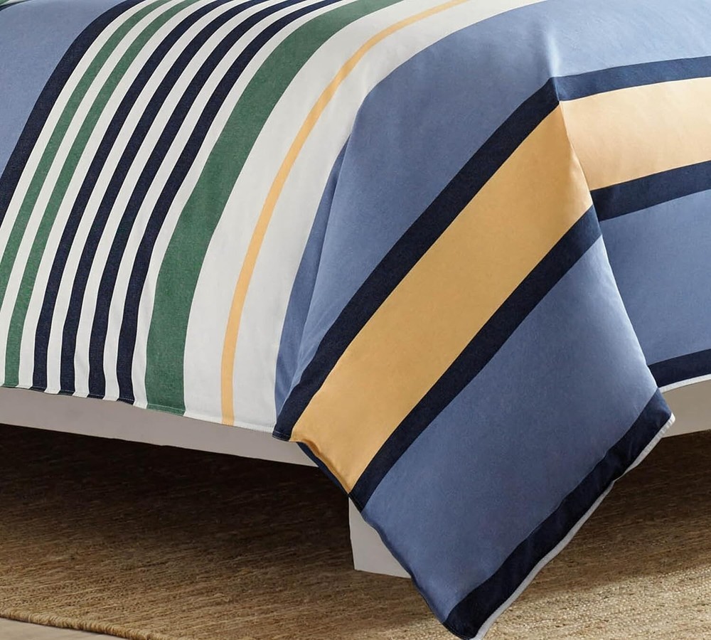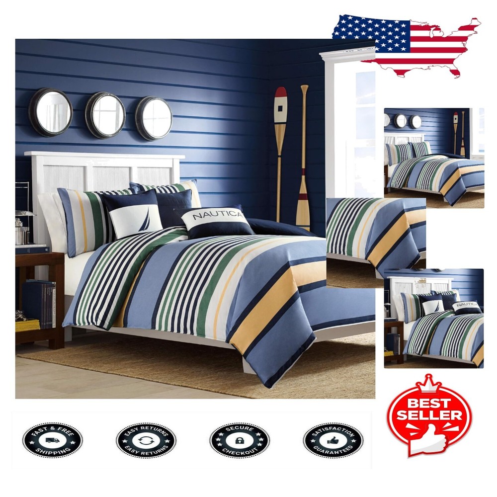 Stylish Twin Reversible Bedding Set with Stripe Pattern and Matching Sham ‹ › ‹ › ‹ › ‹ › ‹ › ‹ › Stylish Twin Reversible Bedding Set Featuring a striking stripe pattern, this Twin Bedding Set effortlessly elevates your decor while providing unmatched comfort. Product Details: MATERIAL: 100% Cotton - luxuriously soft and breathable for the perfect night's sleep. INCLUDES: One comforter and one matching sham, ideal for a coordinated look. Features: High impact stripe design in a vibrant multicolor palette of navy, chambray blue, and white. Accented with bursts of yellow and sea glass green for a fresh, modern aesthetic. Signature navy and white decorative pillows add graphic interest and designer appeal. Reverses to solid navy for versatility and easy styling changes. Dimensions: Twin/Twin XL Comforter - 86"L x 66"W, Standard Sham - 20"L x 26"W. Machine washable for effortless maintenance and care. Why Choose This Bedding Set? This stylish bedding set is not only a dorm room essential but also a statement piece that transforms your space into a haven of relaxation and style. The vibrant colors and detailed patterns breathe life into your room, providing a refreshing ambiance. Enjoy the luxury of 100% cotton, imported and crafted with care, ensuring durability without compromising comfort. Update your room effortlessly and coordinate with our accompanying sheet sets and blankets for a seamless look. Embrace the elegance and comfort of this Twin Reversible Bedding Set today! Shipping Free & Fast Shipping - We offer free shipping to most of the USA with a normal delivery time of 3-7 days. However, due to the current situation, additional delivery time (up to 3 weeks) may be required for some items. Alternative Carriers - We may use alternative carriers (e.g. USPS, FedEx, UPS, etc.) to ensure your package arrives safely and on time. Due to the use of multiple carriers, we are unable to provide a tracking number automatically. Handling Time - Orders are processed and shipped within 1-2 business days of receiving cleared payment. Shipping Restrictions - Shipping to Alaska, Hawaii, Puerto Rico, Guam, and other US territories may incur shipping charges or delivery restrictions. Please contact us before ordering, or your order can be refunded/cancelled. State Restrictions - There may be restrictions based on your state of purchase. For example, certain items may not be shipped to California due to state regulations. Contact for Tracking Updates - If you require tracking updates or have any concerns about the delivery of your order, please feel free to contact us, and we will be happy to assist you. Return 30-Day Hassle-Free Returns - We want you to be completely satisfied with your purchase. If you are not, you can return the item within 30 days of receiving it for a full refund or exchange. Easy Return Process - To start a return, simply contact us and we will provide you with a prepaid return shipping label and detailed instructions. Restocking Fee - There are no restocking fees for returns. However, the buyer is responsible for return shipping costs if the return is not due to a seller's error. Refund Processing Time - Refunds will be processed within 5 business days of receiving the returned item in its original condition. Payment We accept all major credit cards, PayPal, and Apple Pay for your convenience. Your payment information is secure and encrypted to ensure a safe and seamless transaction. Please complete your payment within 3 days of purchase to avoid any delays in shipping. Feedback Your feedback is extremely important to us. We strive to provide the best products and customer service possible. If you are satisfied with your purchase, please take a moment to leave us a positive review. If you have any concerns or issues with your order, please contact us before leaving negative feedback. We are committed to resolving any problems and ensuring your satisfaction. Contact Us If you have any questions or concerns, please feel free to reach out to our customer support team. You can contact us through the eBay messaging system. We are available Monday to Friday, 9:00 am to 5:00 pm EST, and we will do our best to respond to your inquiry within 24 hours. Buy it now and enjoy a pleasant shopping experience! UPC: Not Set Model: Not Set Set Includes: Comforter,Pillow Sham,Comforter Set Material: Cotton,100% Cotton Features: Reversible,Soft,Cozy Character: Not Set Theme: Stripe Care Instructions: Machine Wash Department: Kids,Teens,Adults Room: Bedroom,Dorm Room Labels & Certifications: Not Set Size: Twin Type: Comforter Set Brand: Unbranded Color: Dover Blue Fill Material: Cotton Pattern: Stripes Item Width: Not Set Item Length: Not Set MPN: Not Set Number of Items in Set: 2 Style: Casual Character Family: Not Set Insulation: All Seasons Season: All Country/Region of Manufacture: Not Set Closure Type: No Closure Thread Count: Not Specified Drop Length: Not Set GSM (Grams per Square Meter): Not Specified Product Line: Not Set Personalize: Not Set