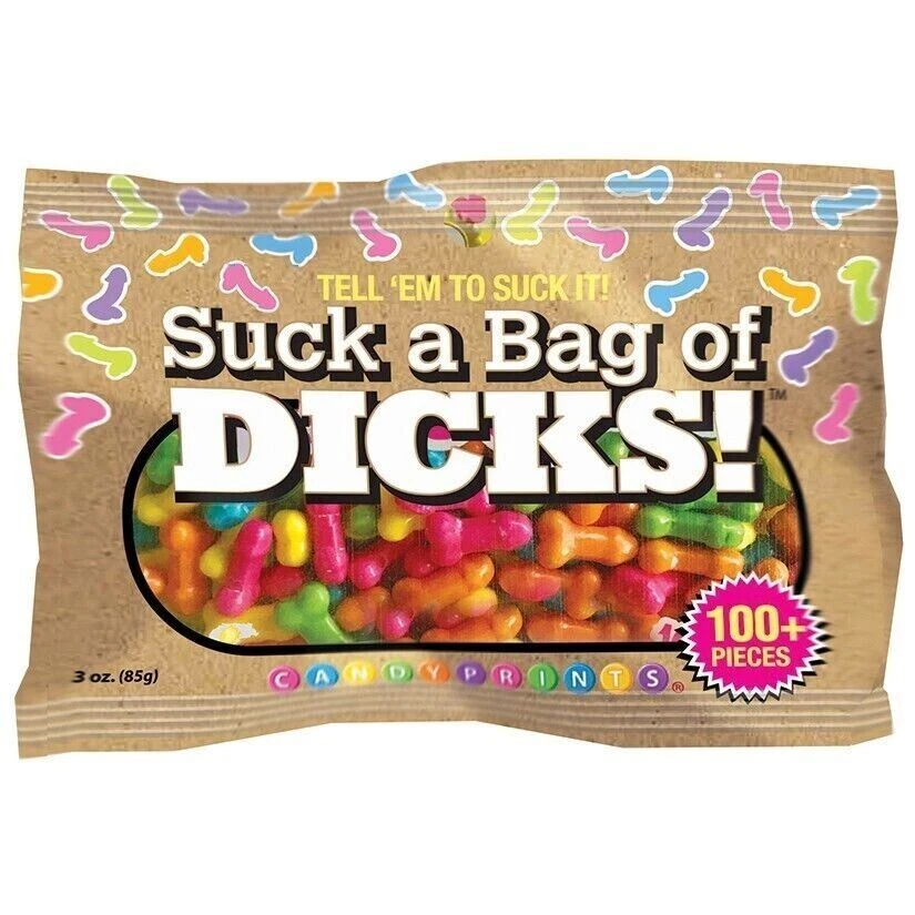 Suck a Bag of Dicks! Penis shaped Candy Suck a Bag of Dicks! Penis shaped Candy Tell 'Em To Suck It! Suck A Bag Of Dicks 3oz Bag Dick Shaped candy with an attiude. FEATURES Assorted Flavors Penis Shaped PACKAGE WEIGHT: 3.20 OUNCES PACKAGE DIMENSIONS: 1.00W BY 3.50H BY 5.00L INCHES Shipping Return We offer FREE SHIPPING within the United States, including Hawaii and Alaska, and use USPS or UPS for most shipments. Most orders will be shipped within 1-2 business days after payment has been received and cleared. You will receive a tracking number once your order has shipped, which you can use to track the status of your shipment. Please note that delivery times may vary depending on the shipping carrier and destination. Generally, orders within the United States will arrive within 3-5 business days. If you have any questions or concerns about shipping, please feel free to contact us. We want you to be completely satisfied with your purchase, and we understand that sometimes returns are necessary. If you had the wrong order and your order hasn't opened yet and you haven't been using it, We accept returns within 30 days of delivery. To initiate a return, please contact us through eBay's messaging system with your order number and reason for the return. We will provide you with a return shipping label and instructions for returning the item. Please note that the item must be returned in its original condition with all tags and packaging intact. We reserve the right to reject returns that are not in their original condition. Once we receive the returned item, we will issue a refund for the purchase price. Refunds will be issued through the same payment method used for the original purchase. Please allow 2-5 business days for the refund to be processed and reflected in your account. If you have any questions or concerns about our return policy, please feel free to contact us through eBay's messaging system. Click to edit text Click to edit text