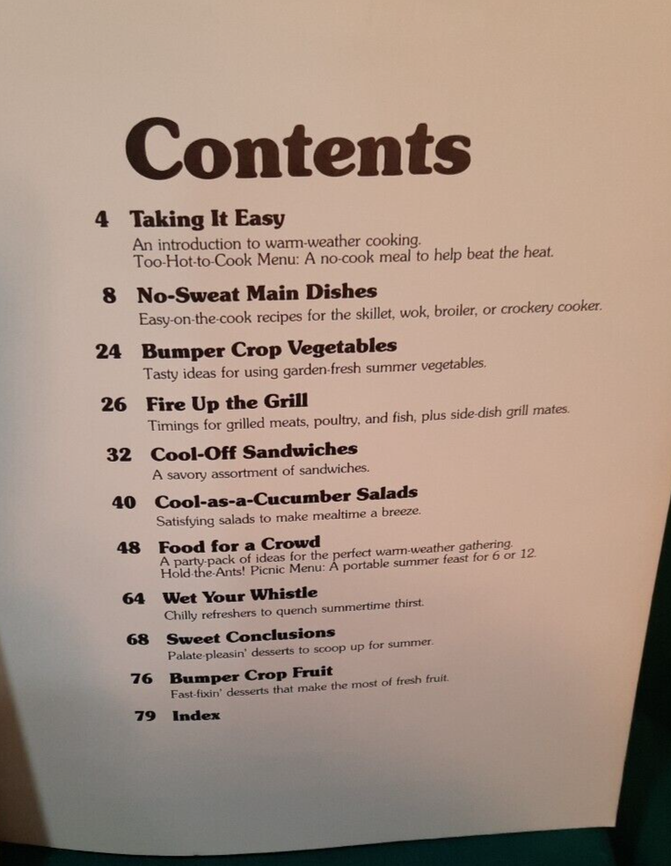 Better Homes & Gardens " Summertime Cooking " Book Condition: Excellent I will be listing many Cookbook and Baking Books . Please keep checking back. I will combine shipping for multiple purchases. I do my best to describe items as accurately as possible but I am not a professional grader and definitions of perfection and flaws differ greatly form one individual to the next so please study the pictures and do not hesitate to ask questions. I will answer them all as quickly and as thoroughly as I can. I will also be happy to send additional pictures upon request. *Note: If by some chance you experience an issue with your purchase, please contact us immediately so that we can provide a prompt solution before leaving negative feedback; We value your business. I SHIP WITHIN THE UNITED STATES ONLY! I do combine shipping send me an email and I will send you an invoice. Shipping for this item in the US will be calculated by your zip code. I accept PayPal only and expect payment within 3 days of auction end. If payment is not received or if you have not contacted me explaining the payment delay then a case will be opened on the fourth day to start the process of getting my fees refunded so I can relist the item. The sooner you pay, the sooner I can ship. I am downsizing my collection so I do not accept returns or refunds. The item(s) is sold as is so please be 100% certain that the item(s) you are bidding on is exactly what you want. Thank you so much for checking out my auction, and my EBAY store. I greatly appreciate it. Be sure to check back frequently as I will be posting much more. Best of luck if you are bidding.