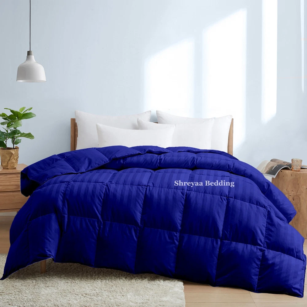 Superb Soft Goose Down Alternative Comforter Olympic Queen Egyptian Blue Stripes