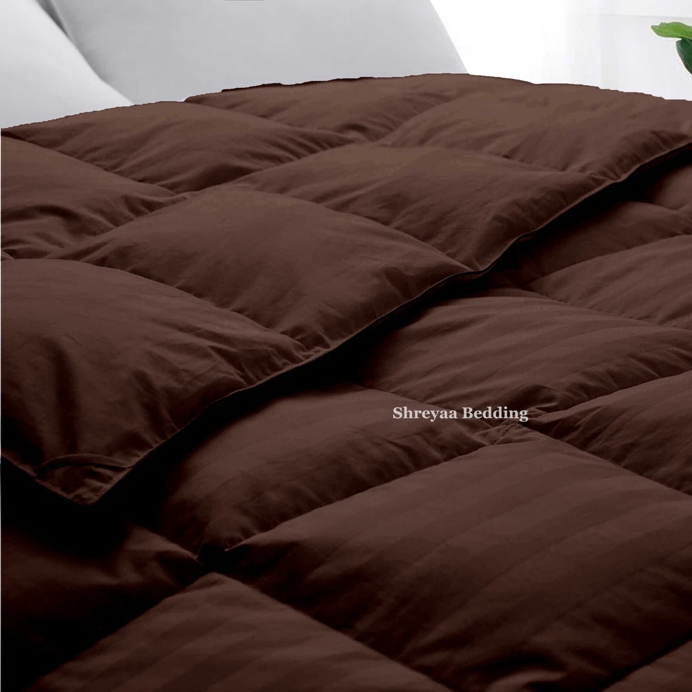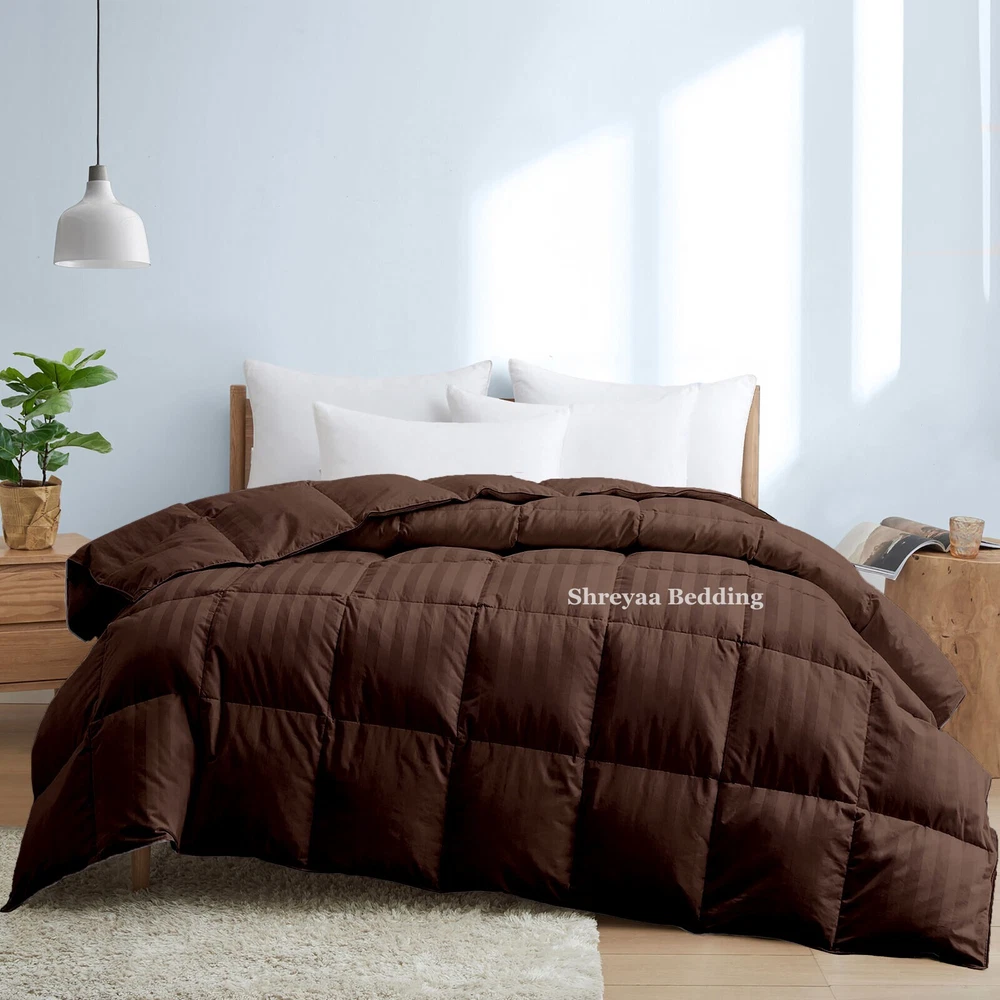 Superb Ultra Soft Goose Down Alternative Comforter Olympic Queen Chocolate Strip