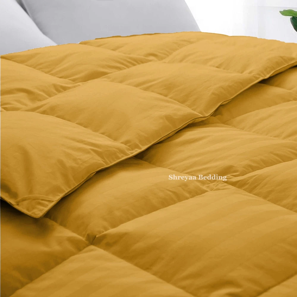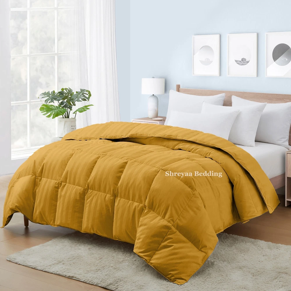 Superb Ultra Soft Goose Down Alternative Comforter Queen Size Gold Stripes