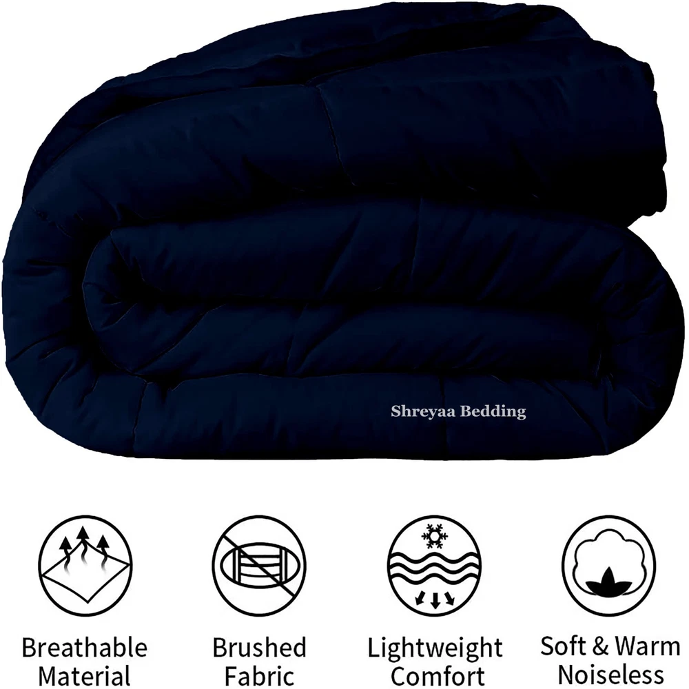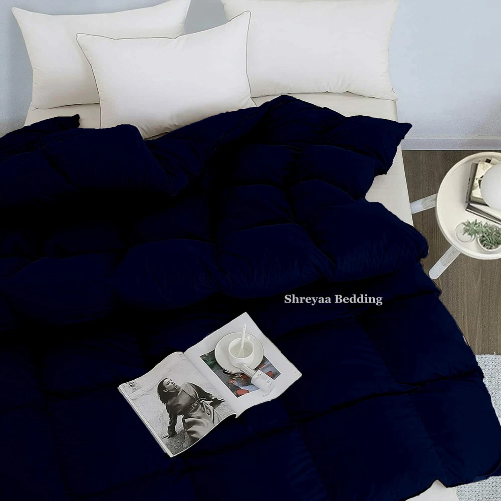 Superb Ultra Soft Goose Down Alternative Comforter Queen Size Navy Blue Solid