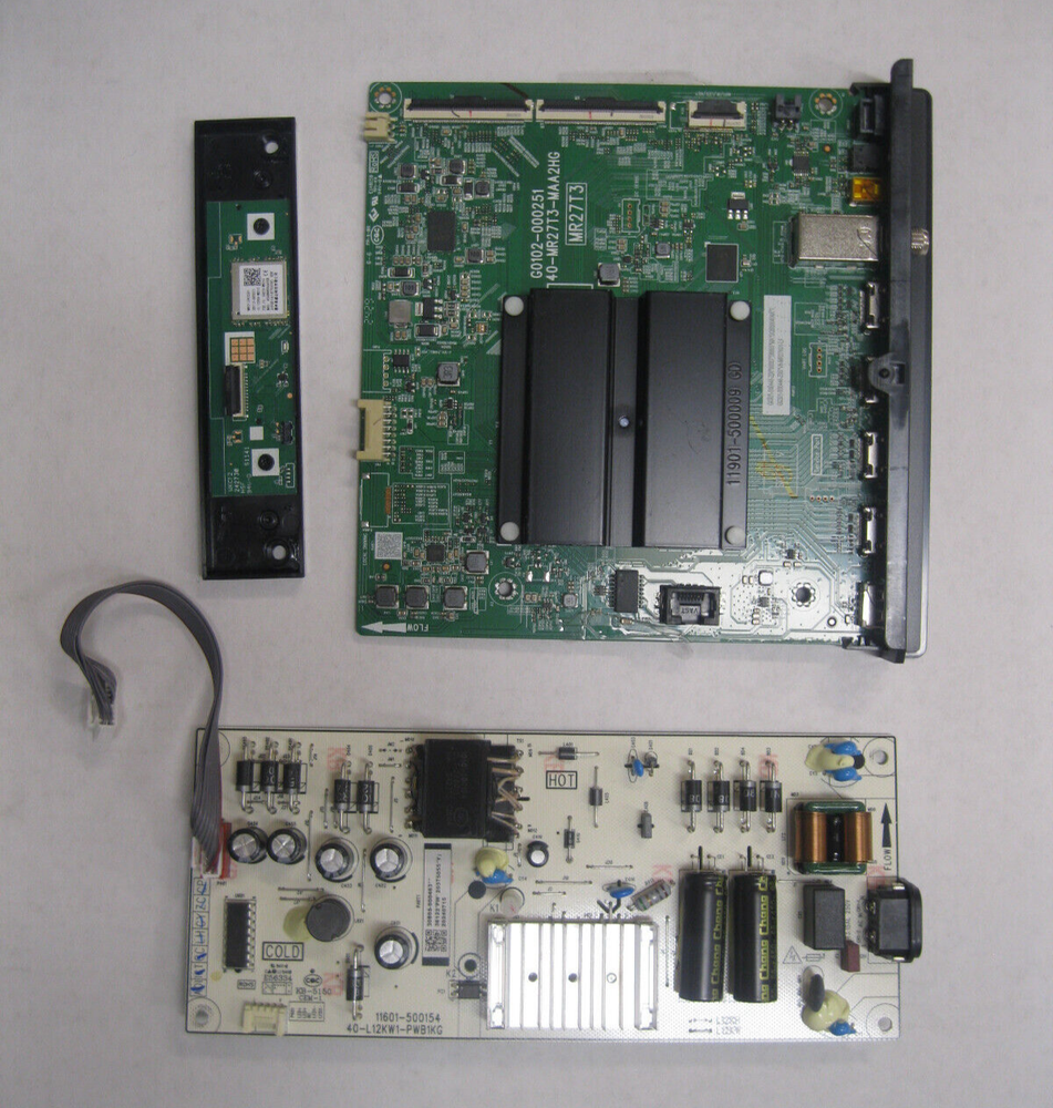 TCL 55" UHD Smart Roku complete kit repair 55S41BR We do not ship / APO / PO BOX Item has a shipping costs, No local Pick up Description: Product is in very good working conditions. You will received as pictured. If you're looking to repair a TV, you've come to the right place. We are the industry leader in replacement TV parts, and we can't wait to help you fix your TV. It's easier than you think! After diagnosing your TV's symptoms, the first step to fixing your TV is finding the correct TV part. We highly suggest searching by the part number located on your TV part. If you need help locating this number Brand TCL Model & Version TCL 55S41BR Main Board: TD.R817T.771 // 30904-000275 // 40-MR17TF-MAC2HG POWER Board: 30805-000374 // 11601-500120 // Button and wireles Board: WKC12R2501 // 30112-000021 WHATS INCLUDE: Boards. AS PICTURED FEEL FREE TO CONTACT US FOR ADDITIONAL PICTURES IF NECESSARY FOR YOU ALL SHIPPING COSTS WILL BE PAID BY BUYER If you're looking to repair a TV, you've come to the right place. We are the industry leader in replacement TV parts, and we can't wait to help you fix your TV. It's easier than you think! After diagnosing your TV's symptoms, the first step to fixing your TV is finding the correct TV part. We highly suggest searching by the part number located on your TV part. If you need help locating this number COMBINE SHIPPING : For combined shipping please place your items in the shopping cart , request seller to revised the total . The Estimated delivery dates are not final, are just an estimation calculated by a program on eBay. Shipping Policies Handling : Orders ship out within 1 business day (unless specified otherwise). All shipping takes place on business days, not on weekends or holidays. If you are outside of the US please note we have absolutely no control over customs; how long they take or how they assess packages; so please understand this and be patient in receiving your order . Tracking: Once your order is shipped, the tracking number will be uploaded to eBay. You can locate the tracking number by looking up the order details in your eBay account. Change Address request : PayPal requires us to ship to the address that they send us in order to be covered under their seller protection program . It is the buyer’s responsibility to make sure that the address is correct before making the purchase PLEASE VERIFY THAT YOUR ADDRESS IS CORRECT BEFORE PAYING I WILL NOT REFUND FOR LOST PACKAGES IF YOUR ADDRESS IS INCORRECT , INCORRECT ADDRESSES WILL BE REPORTED TO EBAY. You are responsible to provide a complete shipping address we are not responsible on lost packages and no refunds will be done International Buyers: Voltage / Features All electrical items that we sell are U.S. Voltage only unless otherwise specified in thelisting. Region Codes and Maps are all made for North America unless otherwise specified in the listing. Please keep the above in mind when purchasing. International Tax/Duty/Customs: Please note that import duties, taxes and charges are not included in the item price or shipping charges (unless you are using eBay Global Shipping). These charges are the buyer's responsibility.Please check with your country's customs office to determine what these additional costs will be prior to bidding/buying. These charges are normally collected by the delivering freight (shipping) company or when you pick the item up; do not confuse them for additional shipping charges. RETURN POLICY : All Return accepted Your buyer should contact us within 7 days after receiving the item. " Refund Given as Exchange" Return Shipping will be paid by you buyer (Not Refundable) Additional Return Policy Details THERE IS A 20%RESTOCKING FEE IF THE ITEM IS AS DESCRIBED , REFUND =80% OF THE PURCHASE PRICE. NO EXCEPTIONS, REFUND WILL BE GIVING WITHIN 24 HRS OF RECEIVING THE RETURNING ITEM OUR GOAL : Satisfying you the buyer is our goal. If You are not happy with your item please let us know FIRST, we will do our best to solve the problem. Please use the link "Ask the Seller Question " or send "eBay message" in you "My eBay" to contact us if you have problems, special requests or suggestions, "We are very glad to help you anytime" Please leave us the positive feedback and good detailed seller rating after you received our package and satisfied with it. as you know, every seller works hard for the positive feedback. and if you have any question with the transaction or you do not satisfied with the item ,please feel free to contact with me before you leave any feedback ,i will responds you within 24 hours , 100 % Satisfaction Guaranteed We take the weekends off, so many questions sent then will be answered on Monday. Thanks for your patience! NOTE: Items are fully tested at our facility and is in 100 % working condition. Cosmetically items may have small blemishes that don't affect the performance of the product and are generally shown in our pictures.Items do NOT come with original BOX or accessories.