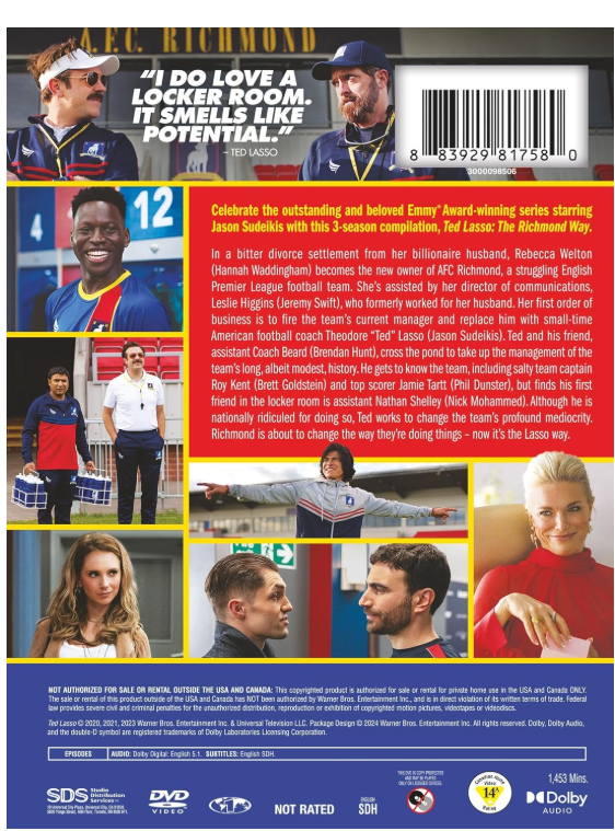 This Ted Lasso DVD set is fantastic—loaded with laughs, heart, and unforgettable moments. The complete series on seven discs delivers sharp writing, brilliant performances, and endless rewatch value. The packaging is sturdy, and the English subtitles are a nice bonus. If you love feel-good comedy, this is a perfect addition to your collection. Highly recommended!