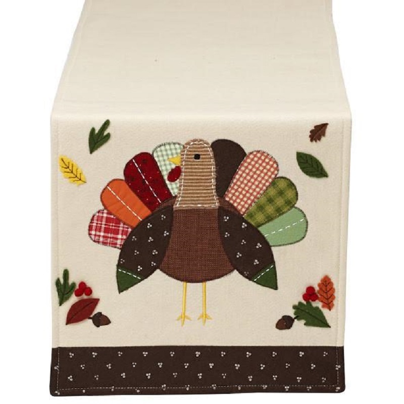 ** THANKSGIVING RUNNER ** ** Turkey Embellished Table Runner ** Design Imports ** NEW with Tag ** 14 X 64 Rectangular ** 98% Polyester 2% Cotton ** Felt - Like (see photos) ** Thanksgiving Decor !! ** Turkey Runner 14X64 ** First Class Shipping ** ships Mon-Fri w/Tracking!! ** First Class up to 16oz ** i combine shipping when i can ** Matching Towels ** thank you !! ** HAPPY THANKSGIVING !!! ** God Bless