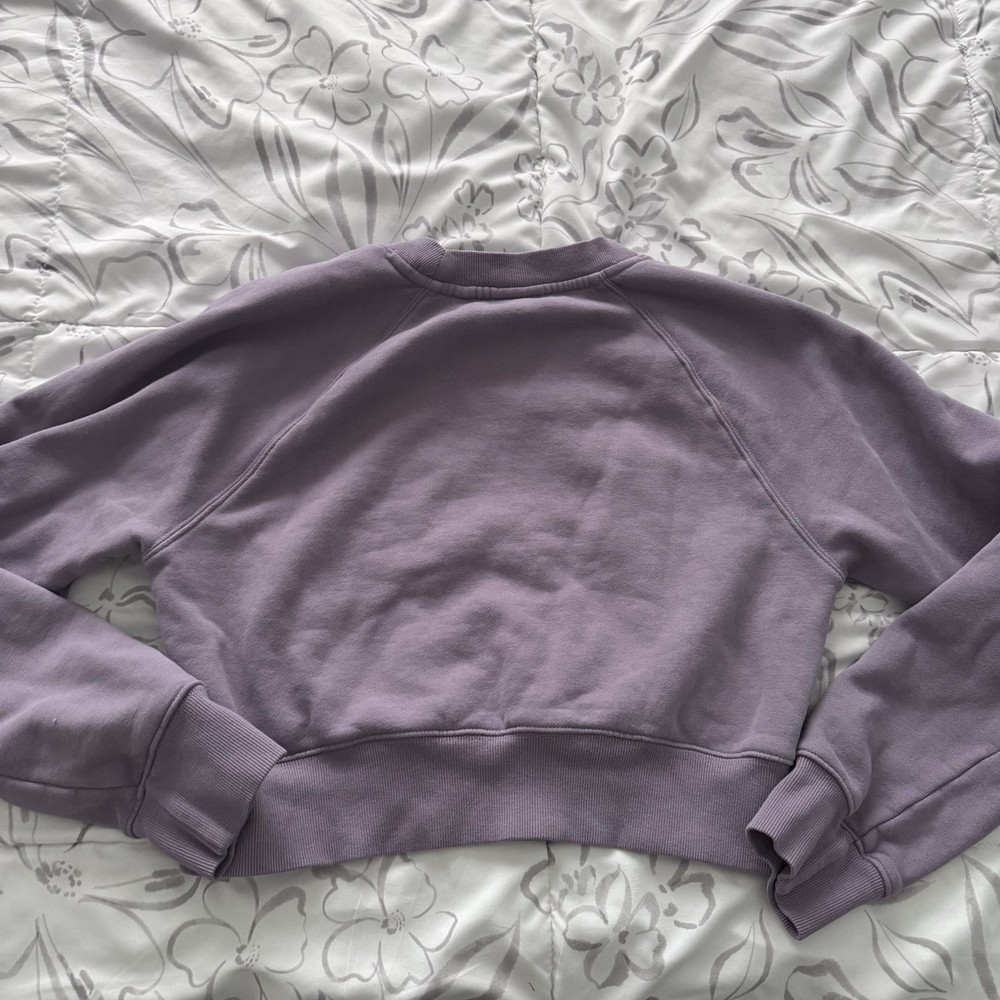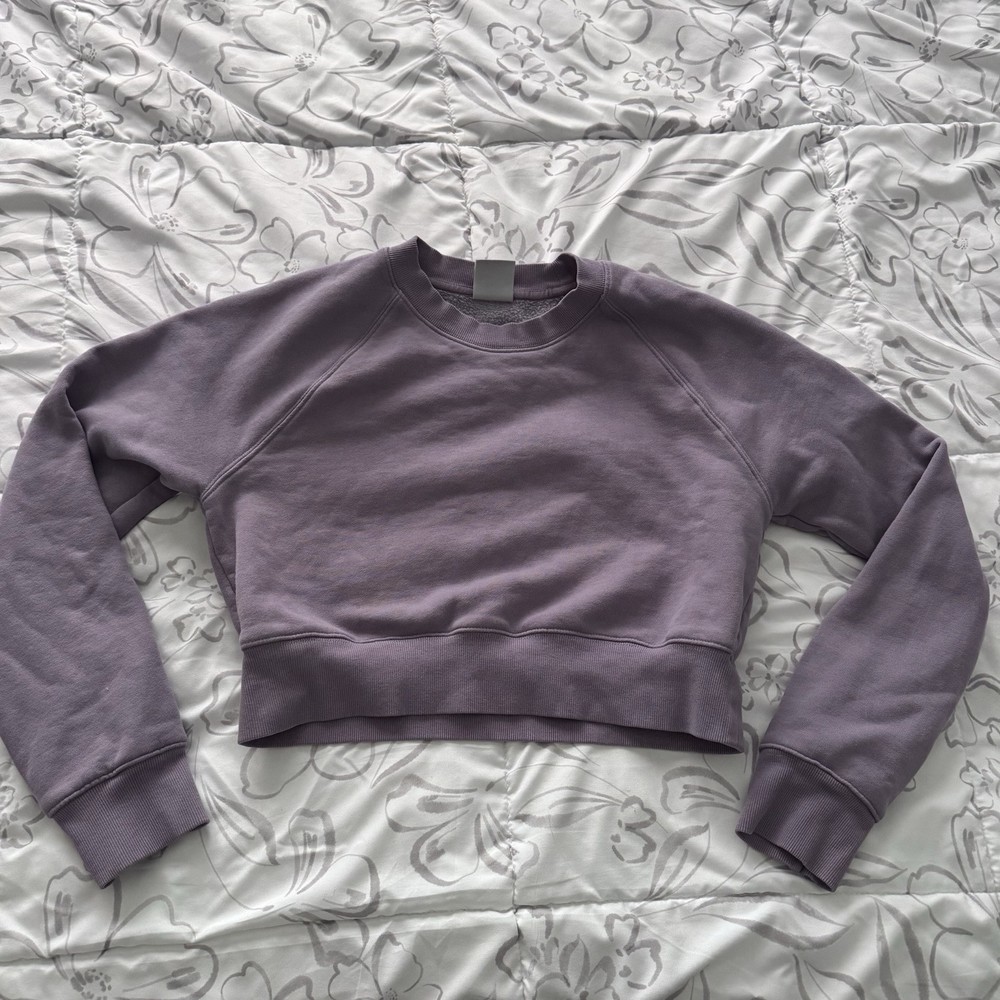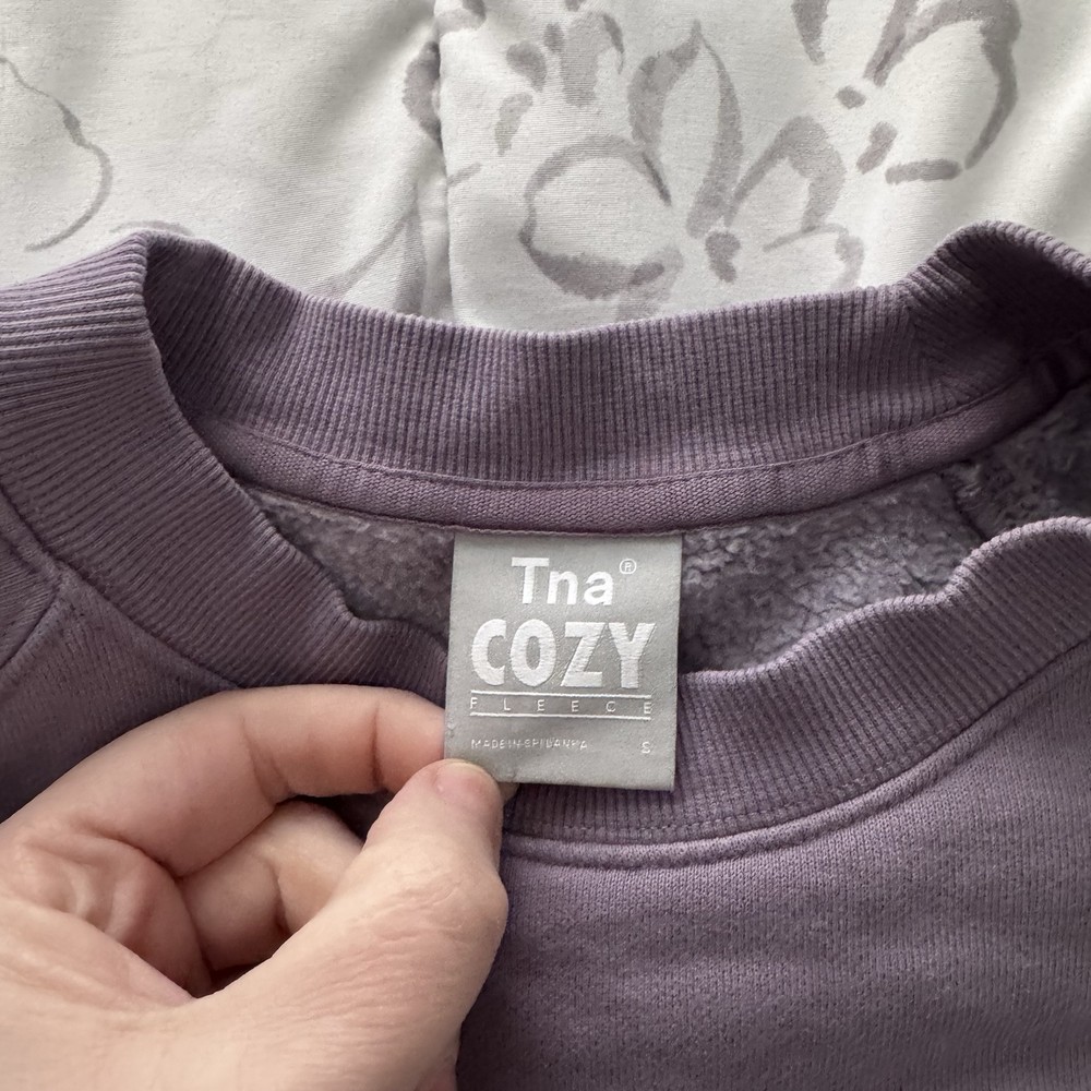 Wrap yourself in the cozy comfort of the TNA Perfect Fleece Cropped Sweatshirt, a versatile addition to your loungewear collection. This soft purple sweatshirt, featuring a solid pattern, is crafted from a cozy cotton blend fleece fabric that provides both warmth and breathability. Designed with a modern pullover style, it's perfect for casual outings or travel, offering a regular fit for relaxed wear. The sweatshirt boasts long sleeves and a pullover closure, making it easy to layer over your favorite tops and leggings. Available in a size small, it's a stylish and comfortable choice for the cooler seasons of fall, spring, and winter. Embrace the fusion of fashion and comfort with this TNA fleece sweatshirt, an ideal pick for those who appreciate a blend of contemporary design and loungish feel.