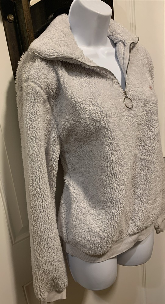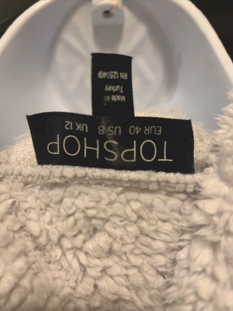 **PLS READ DESCRIPTION/See Photos TOPSHOP Lightgray Cool Sherpa 1/4 Zip Pullover Sweater Size 8. In GOOD Pre-owned Condition. It has light signs of usage. No rips or tears. Sweater is very comfy, cozy and classy looking. Please check photos for more details as well as condition. RETURNS NOT ACCEPTED. Please message me if you have some more questions. Thank you! (Price adjusted accordingly)