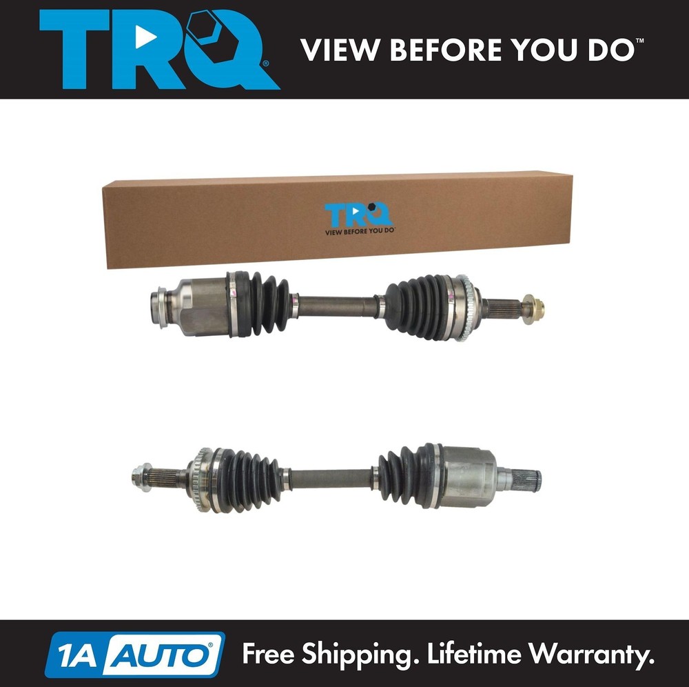 TRQ New Complete Front CV Axle Shaft Assembly Kit Pair for Fusion Milan 3.0L AT Kit Includes : (1) Front Driver Side CV Axle Assembly (1) Front Passenger Side CV Axle Assembly Kit Part Details Underlay : 2 total parts - 1x Front Driver Side CV Axle Assembly, 1x Front Passenger Side CV Axle Assembly Quantity : 2 Piece Lifetime Warranty This item is backed by our limited lifetime warranty. In the event this item should fail due to manufacturing defects during intended use, we will replace the part free of charge. This warranty covers the cost of the part only. CV axles are designed to transmit the power from your vehicle's drivetrain to the wheels while being able to flex and pivot to the demands of the steering and suspension systems. If your vehicle is making clicking noises at lower speeds or when making turns, it may be time to replace your CV axles with our 100% brand new assemblies. Fits : Fusion Fusion Ford V6 3.0L 6 Speed Automatic Transmission Front Driver & Passenger Side CV Axle Assembly Set Milan Milan Mercury V6 3.0L 6 Speed Automatic Transmission Front Driver & Passenger Side CV Axle Assembly Set Zephyr Zephyr Lincoln Front Driver & Passenger Side CV Axle Assembly Set