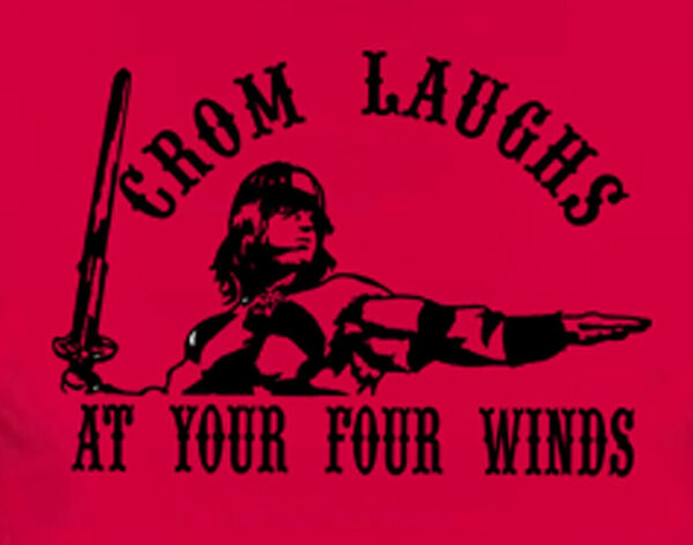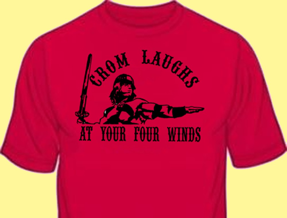 100% Cotton Pre-Shrunk Heavy Weight 6.4 oz. Red, T-Shirt Graphic Printed Full Front in Black. "Conan The Barbarian" "Crom Laughs At Your Four Winds" Classic Motion Picture Graphic is approximately 9" High x 11" Across the shirt brand new in the package, and never worn. SIZE CHART for: Short Sleeve Unisex T-Shirt, Long Sleeve Tee, Short Sleeve Polo Shirt, & Sweat Shirts. SMALL=18 from armpit to armpit 28" from shoulder to hem. Chest=35-37 Medium = 21" from armpit to armpit, 29" from shoulder to hem. Chest=38-40 Large = 22" from armpit to armpit, 30" from shoulder to hem. Chest=41-43 XL = 24" from armpit to armpit, 31" from shoulder to hem. Chest=44-46 XXL (2XL) = 26" from armpit to armpit, 32" from shoulder to hem. Chest=47--49 XXXL (3XL) = 28" from armpit to armpit, 33" from shoulder to hem. Chest=50--52 XXXXL (4XL) = 30" from armpit to armpit, 34" from shoulder to hem. Chest=53--56 XXXXX (5XL) = 32" from armpit to armpit, 35" from shoulder to hem. Chest=56--58 Use the above chart to select a comfort fit. CHECK OUT & PAYMENT INFORMATION: It's easy. Purchase, pay, and get on with your day! When purchasing more then one item, use the Ebay shopping cart or you can always request a total from me. If you are bidding on auction items and want to pay at one time when all auctions have ended, please let me know. I'll hold items for up to 5 days and may be able to get you a better shipping discount. We must ship to the name and address on the Ebay invoice for your order to be covered 100% by the Ebay Buyer Protection Plan. I accept Paypal. Don't have a Paypal account? No problem. You can still use your credit card using Paypal. Just go to Paypal for additional information. I've been on Ebay for a decade, it's a secure site, and Paypal is the safest way to purchase on the Web. ALWAYS... communicate with Paypal, Ebay, and Me, right within the Ebay site and security will never be an issue! SHIPPING INFORMATION: Because of the Heavy Weight Quality, postage for Sweat Shirts and Sweat Pants are calculated to your location by the Ebay postal calculator. Because of the weight, they must ship by Priority Mail. I do not make any money on the postage. You are charged the exact cost for shipping. If you're farther away from Ohio it's going to cost more to ship. Customers closer to me make out but, I like to think everyone makes out by investing a few more dollars into quality apparel. On the up side, I can get two Sweat shirts in a medium flat rate box or, a Sweat and a couple of T-Shirts, and four Sweats in a large Flat Rate box. Flat rate ships for the same price all over the country..... So the only way to save money on shipping is to buy more!... I kinda like that idea!... and you'll like my Heavy Weight Sweats, your satisfaction is guaranteed! We ship Monday through Friday accept for holidays. Your order will usually be shipped within 24 hours. If there will be an unanticipated delay, you will be notified by E mail of the delivery date. It's rare but unplanned delays do happen, especially around peak sales periods. We're only here because of you, and want your Ebay to be a pleasant experience .... so you'll come back again! Yes, absolutely I combine ship. On multiple items, just wait until your finished so I can send an updated invoice. This is the only way I can combine for you. Shipping on T-Shirts is always Free. I ship via US Postal Service worldwide. Orders are shipped by First Class Mail or Priority Mail for heavy weight ( sweat shirts) and multiple items. You will always receive E Mail confirmation your tracking number for Priority Mail, when your order is shipped. As a proud USMC veteran, I ship to all APO and military address... No Problem! INTERNATIONAL SHIPPING: I ship via US Postal Service Worldwide by First Class Air or Priority Mail. Most orders ship within 24 hours after payment is received, excluding weekends and holidays. All customs, brokerage, and duty fees associated with your order are the responsibility of the buyer and are not included in the price. All orders are marked as merchandise and the amount you paid will be on the postal documentation. An order won't be deemed lost until 60 days after the original shipping date. I can be contacted before the purchase regarding shipping costs. CUSTOMER SERVICE: Always try to communicate with me by email on the secure Ebay site, your response will be much quicker. I do my best to respond to your emails within 1 day and I will always send customer email within the Ebay site. I have been on Ebay for over a decade... way to many scams on the net!... but Ebay remains a safe, secure, network! Legitimate email sent from Ebay to your original email address will always be available on the Ebay site, for your secure response. Positive feedback will be automatically left once your order has been shipped. After you have received your item and have no issues, please leave positive feedback for me. If for any reason your not completely satisfied with our product, service, communication, or delivery, contact me before you leave feedback so, I may resolve the issue. We're serious about good service, have built a reputation on Ebay as such, and see no reason for anyone to go away unhappy! RETURNS & EXCHANGES: Returns and exchanges will be accepted for any item, except for personalized items, for up to 30 days. No questions asked but, if you have a problem with anything, I'd like to know, it's how I improve the service. MISCELLANEOUS & CONTACT INFORMATION: Need an item shipped to a different address or a note included? Put all special requests into the Paypal note to seller box and I'll be sure to see it with your order. You can always email us on Ebay, but be quick, I may be shipping the very next day!