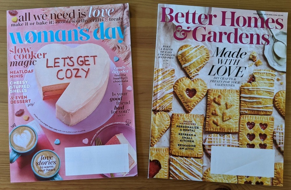 This listing is two February magazines to help you get ready for next Valentines Day. Both magazines are in good to very good condition. Features: Love stories to warm your heart Candy Decoder -- Healthy Chocolate Crafts & Treats Jam-Filled Hand Pies ....and much more!