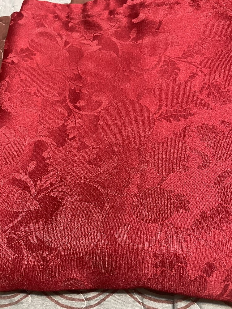 Add a touch of luxury to your dining room or kitchen this Christmas with this beautiful burgundy red tablecloth. Measuring 52 x 70 inches, it has a rectangular shape and a stunning scroll pattern that is sure to impress your guests. Made from high-quality polyester fabric, it is both durable and easy to clean, making it the perfect addition to your home for the festive season. This tablecloth features shades of red that perfectly fit the Christmas theme and will complement any kitchen or dining room. It is perfect for both formal and casual occasions and can be used year after year. Get ready to impress your guests with this Mainstays tablecloth that is sure to add a touch of elegance to your home. 8 Napkins listed separately