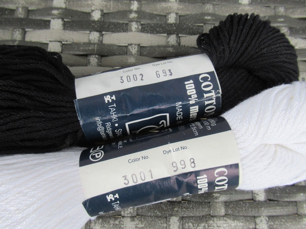WELCOME TO WEAVING-THROO-LIFE We offer quality new and vintage items for your hobby needs. We will be more than happy to combine multiple listings into one package for a discounted shipping price. Add all listings to a cart and request a total when ready to check out. If you purchase them separately, we reserve the right to combine them into one shipment. PLEASE ask any and all questions prior to purchase, especially if something doesn’t seem to make sense. We have been selling on eBay for many years and wanted a page dedicated to all things YARN, THREAD & CRAFTS We will be adding fabric and beads in the near future, so be sure to save us as a favorite seller to see what we have to offer next. Enjoy the listing and we look forward to doing business with you. You are purchasing the item displayed in the photo. Tahki Imports Cotton Classic 100% Mercerized Yarn Made in Greece 1x Black 3002 / 393 1x White 3001/998 Lot of 2