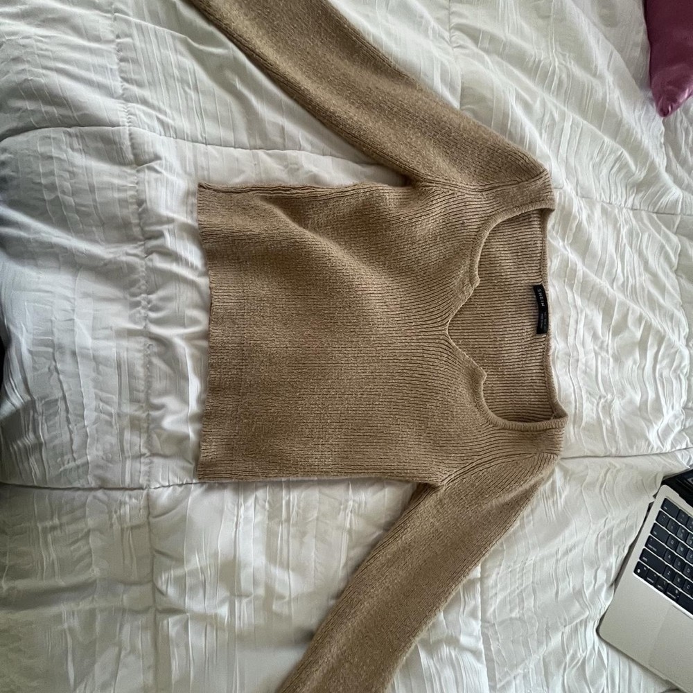 Wrap yourself in the cozy comfort of this SheIn knit sweater. Featured in a versatile tan brown hue, this long-sleeve basic piece is a go-to for casual occasions during the fall season. With its regular fit size small, it's designed to flatter your silhouette while providing a snug and warm embrace. Crafted from soft, high-quality fabric, this sweater ensures both style and comfort. Its classic design makes it easy to pair with a variety of bottoms and accessories, making it a must-have addition to your wardrobe. Whether it's a laid-back day out or a relaxing evening at home, this sweater is perfect for any casual setting.
