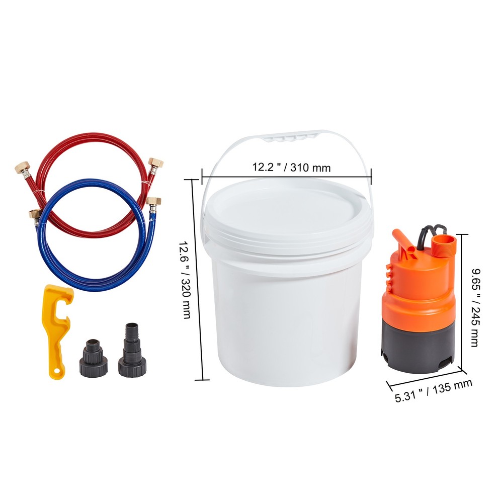 Tankless Water Heater Flushing Kit High power of 1/3 HP, ample horsepower, including multiple accessories, makes it the best tool kit for maintaining and cleaning instant water heaters. This instant water heater flushing kit features a submersible pump with high waterproof performance, as well as overheat and overload protection, providing multiple layers of security to ensure your safety during use. The installation of this instant water heater flushing kit is very simple, requiring only 4 steps, making self-service flushing and cleaning no longer cumbersome. Equipped with red and blue dual-color water hoses, this instant water heater flushing kit is applied to the cold water inlet and hot water outlet respectively, making it easy to distinguish and preventing confusion. With a large capacity water tank and a handle for easy carrying, this kit allows for easy transport and immediate use. The top of the bucket lid is equipped with a bottle opener, designed for effortless opening with minimal effort. Features & Details Powerful Performance: The submersible pump boasts a high power of 1/3 HP, with a pump speed of 1980 GPH and a sufficient 16-foot head pressure, making descaling simple and serving as the ideal tool for maintaining and flushing water heaters. Waterproof Submersible Pump: Featuring an advanced waterproof design, the pump effectively prevents water from entering the interior and causing damage, allowing you to descale with peace of mind at all times. Dual-layer Hose: The PVC-coated hose tightly encases a high-density woven stainless steel tube, providing leak and rust resistance while being less prone to breakage. Additionally, it reduces the problem of metal tube burrs, greatly extending the lifespan. Hassle-free Quick Installation: Installation of the instant water heater flushing kit is extremely simple, requiring only 4 steps, making self-service descaling and cleaning no longer tedious. Complete Accessories: This flushing kit includes a pump, two hoses, a bucket, a plastic wrench, and two adapters, providing everything needed for flushing water heaters. SHIPPING ABOUT US PAYMENT RETURNS CONTACT WARRANTY Welcome to our eBay store. As a leading and emerging company in manufacturer and exporting business, we are specialized in Business and Industrial Products, Sporting Goods, Pet Products, Home and Garden products for more than 10 years. We believe that it is our vision and mission to provide innovative products with best service and competitive price to satisfy you. Our goal is to make sure that you can find exactly what you are looking for and make it easy for you to place your orders. We accept PayPal payment,PayPal Credit,Credit card or debit card and so on. Payment should be completed within 4 (Four) days of auction closing. Or unpaid dispute will be filed for closing auction. We will leave a positive feedback immediately after payment is received. We appreciate a positive feedback as much as you do. If for some reason there is any issue with the purchase, please contact us prior to leaving feedback, we will be glad to work together and provide a satisfying solution. Please be aware that PO Box cannot receive items, please DO NOT fill in the PO Box address. DELIVERY DAYS: 3-7 BUSINESS DAYS 3 BUSINESS DAYS SHIPPING OUT SHIP FROM CA & TX & NJ & GA & NC &OR WAREHOUSE California Warehouse: City of Industry, CA Texas Warehouse : Houston, TX New Jersey Warehouse : Perth Amboy, NJ New York State Warehouse: Perth Amboy, NJ Georgia Warehouse: Austell,GA North Carolina Warehouse: Grove NC Oregon Warehouse: AIRPORT WAY Portland,OR All of our items are backed with a 30-day return policy. We ensure all our items are new and in excellent condition prior to shipping. In case you receive the item that is not to the standards above, please contact us via e-Bay messages. All returns must be in new original condition as received and should be shipped with delivery confirmation Please note that all returns must be pre-approved by us. Unauthorized returns will not be accepted. If you need to return, please check twice to confirm the item not work and contact our customer service representative, let us know the detailed problem and send us some pictures for confirmation. We ONLY accept returns with original package. Please make sure that item has NO man-made sabotage. Used items will not be accepted for return. Email Customer Support: 9:00am-2:00am PST Sunday-Friday All emails will be responded to within 12-24 hours This item comes with 12 months Warranty from the date of customers purchased it. Special circumstances will be listed clearly in the listing. If your item has been damaged in transit or become faulty in warranty period, please email us with pictures or video to show the problem. Please do check everything carefully after you received the parcel, any the damage except DOA (Dead-On-Arrival) would not be covered if it's your fault. Replacement products are provided with the same warranty as the returned products. Tankless Water Heater Flushing Kit High power of 1/3 HP, ample horsepower, including multiple accessories, makes it the best tool kit for maintaining and cleaning instant water heaters. This instant water heater flushing kit features a submersible pump with high waterproof performance, as well as overheat and overload protection, providing multiple layers of security to ensure your safety during use. The installation of this instant water heater flushing kit is very simple, requiring only 4 steps, making self-service flushing and cleaning no longer cumbersome. Equipped with red and blue dual-color water hoses, this instant water heater flushing kit is applied to the cold water inlet and hot water outlet respectively, making it easy to distinguish and preventing confusion. With a large capacity water tank and a handle for easy carrying, this kit allows for easy transport and immediate use. The top of the bucket lid is equipped with a bottle opener, designed for effortless op