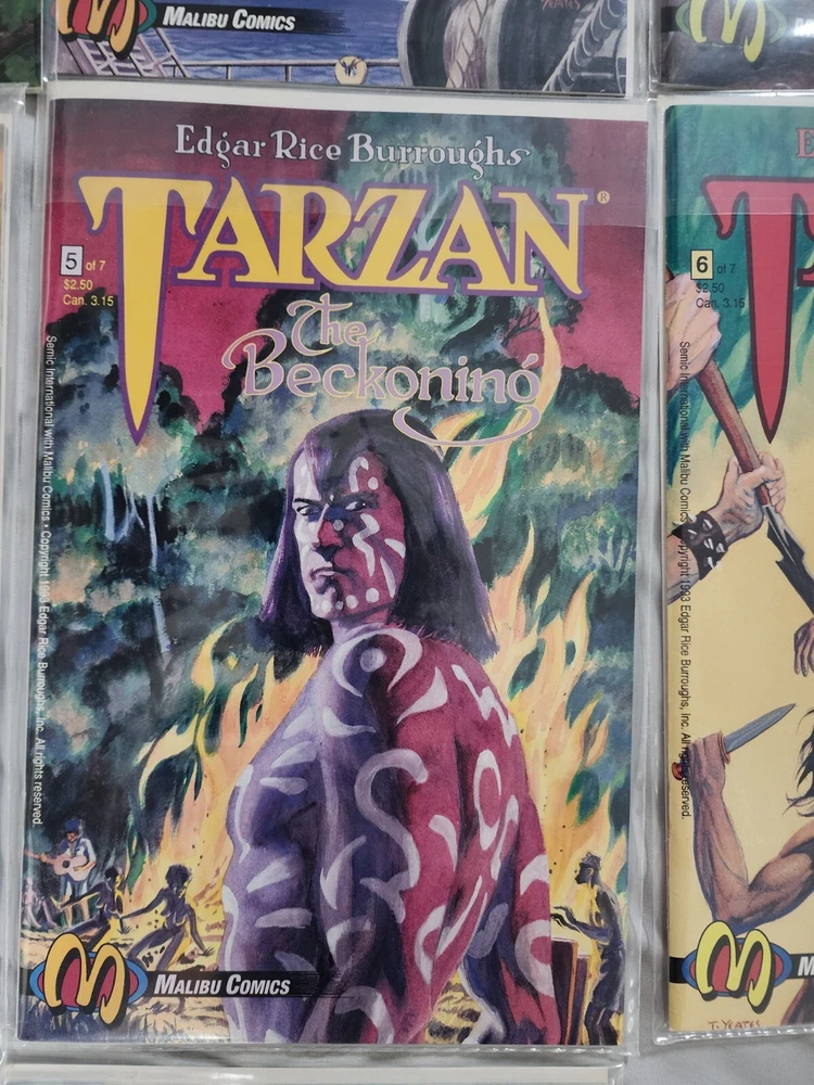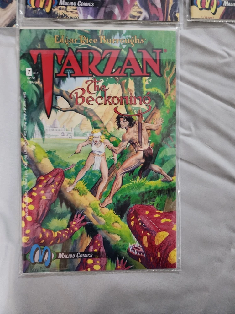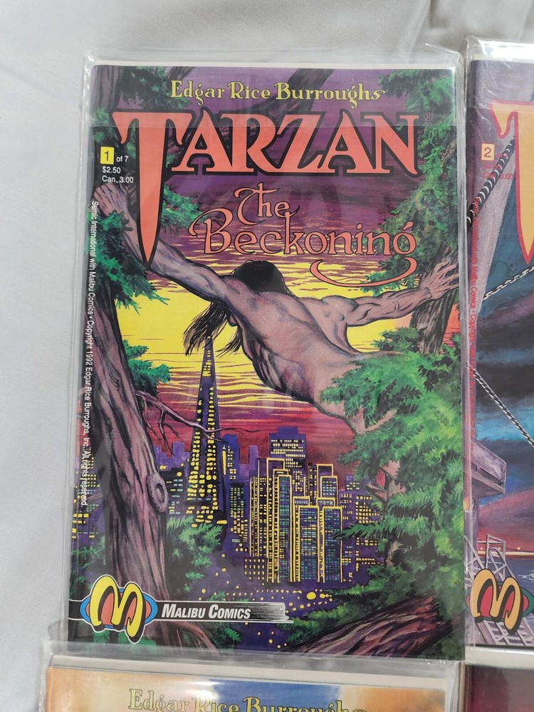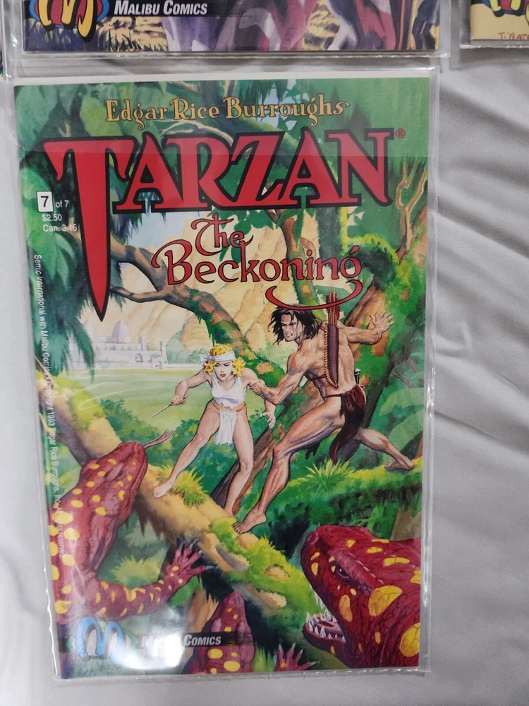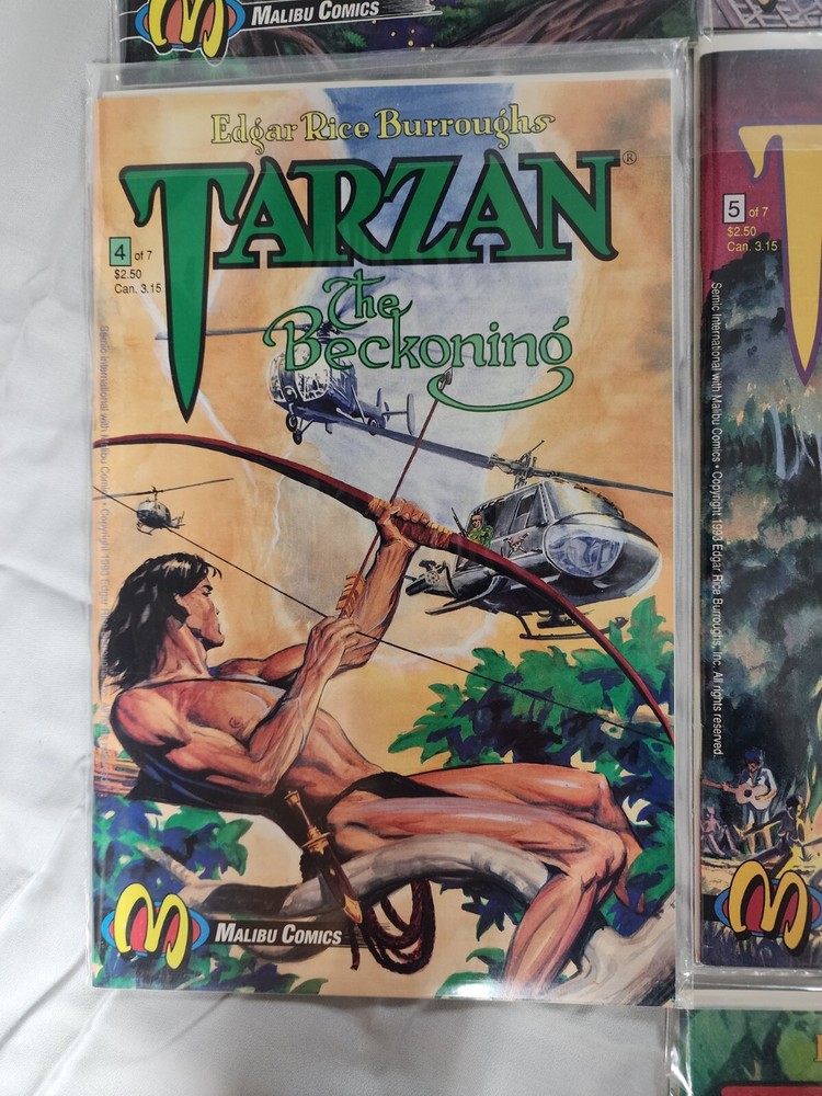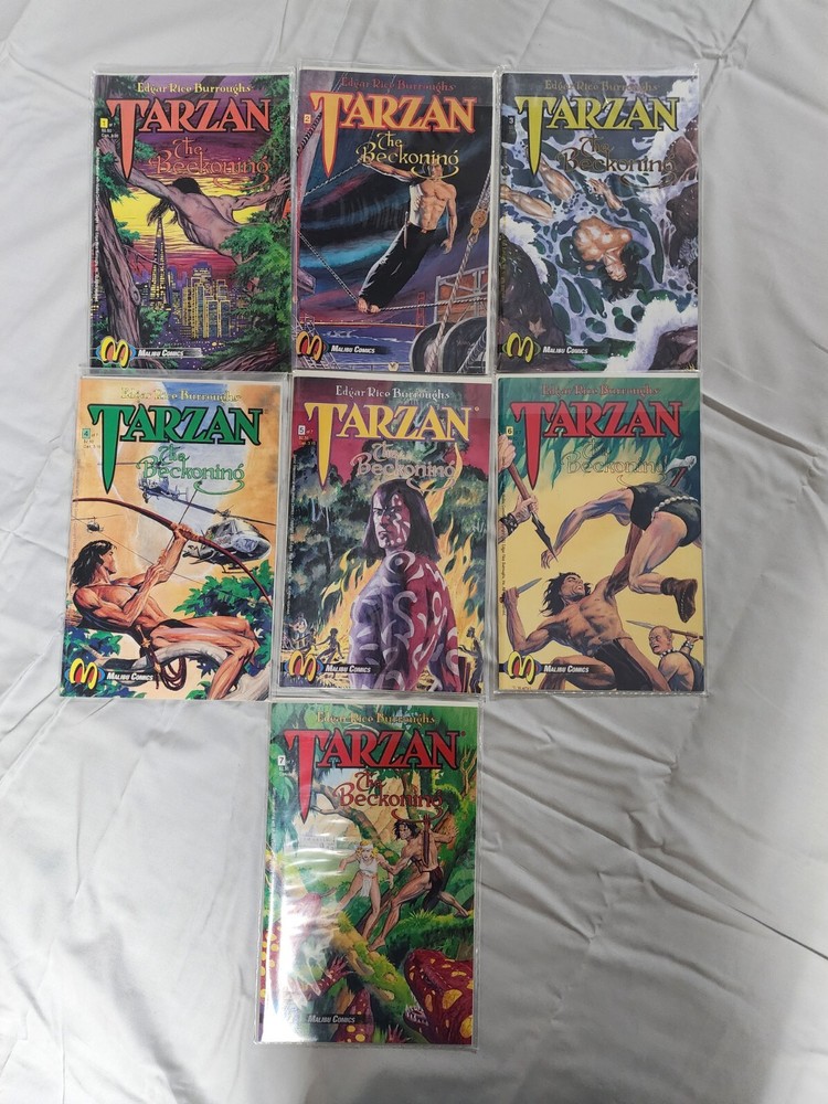 Experience the thrilling adventures of Tarzan in this complete set of "Tarzan: The Beckoning" comic books. Written by Edgar Rice Burroughs, this series follows the iconic character as he navigates the dangerous jungles of Tarzan. The set includes issues 1-7, each with a unique storyline that will keep you on the edge of your seat. Immerse yourself in the world of Tarzan and witness his bravery and cunning as he battles through treacherous terrain and dangerous enemies. This set is perfect for any comic book collector or fan of the classic Tarzan franchise. Don't miss out on the opportunity to own this exciting piece of history.
