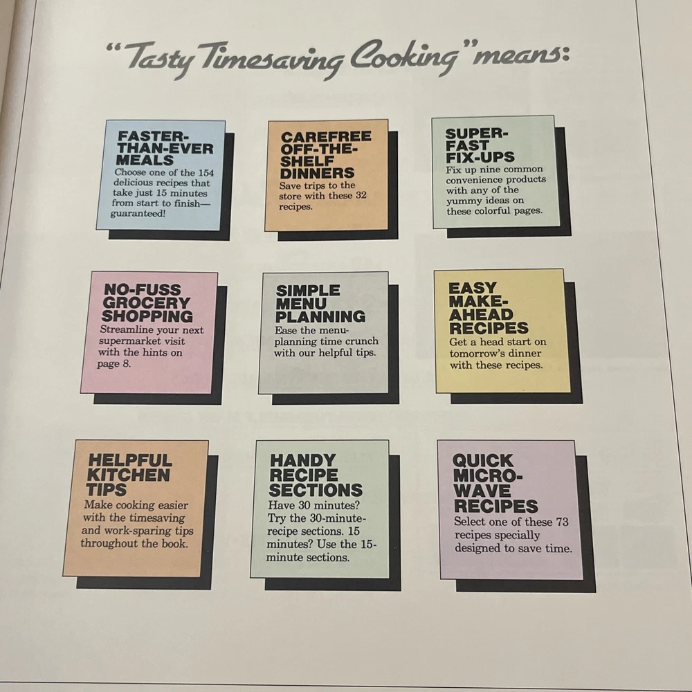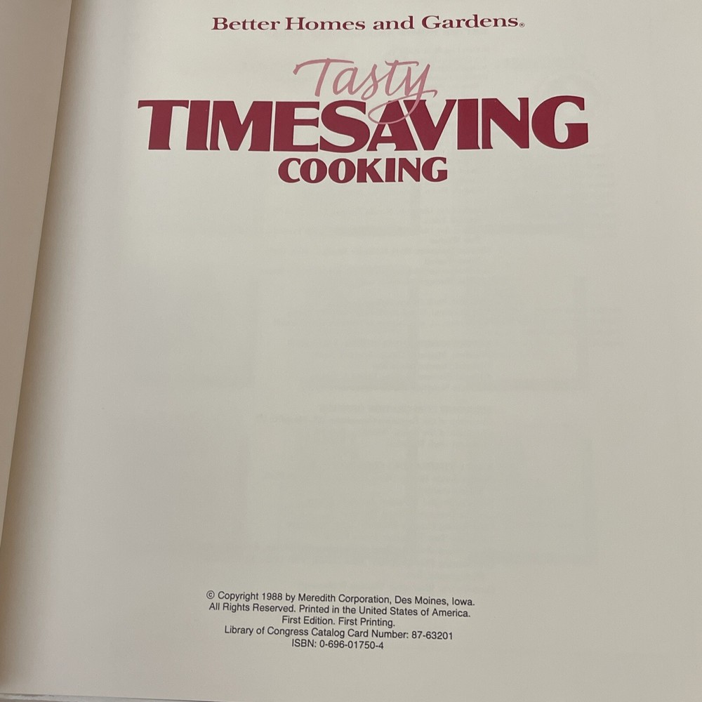 Tasty Timesaving Recipes Cookbook Cooking by Better Homes & Gardens 1988 HC. Ships via USPS Media Mail Indulge in the art of cooking with the Tasty Timesaving Recipes cookbook by Better Homes & Gardens. This hardcover edition book features 240 pages filled with mouth-watering recipes for adults, covering a wide range of cooking genres such as baking, grilling, and slow cooking. The book is beautifully illustrated, making it an exquisite addition to your collection. The book is in excellent shape and has been well-cared for. It is a great gift for a cooking enthusiast or a perfect addition to your personal library.