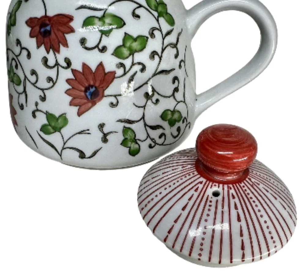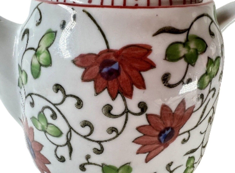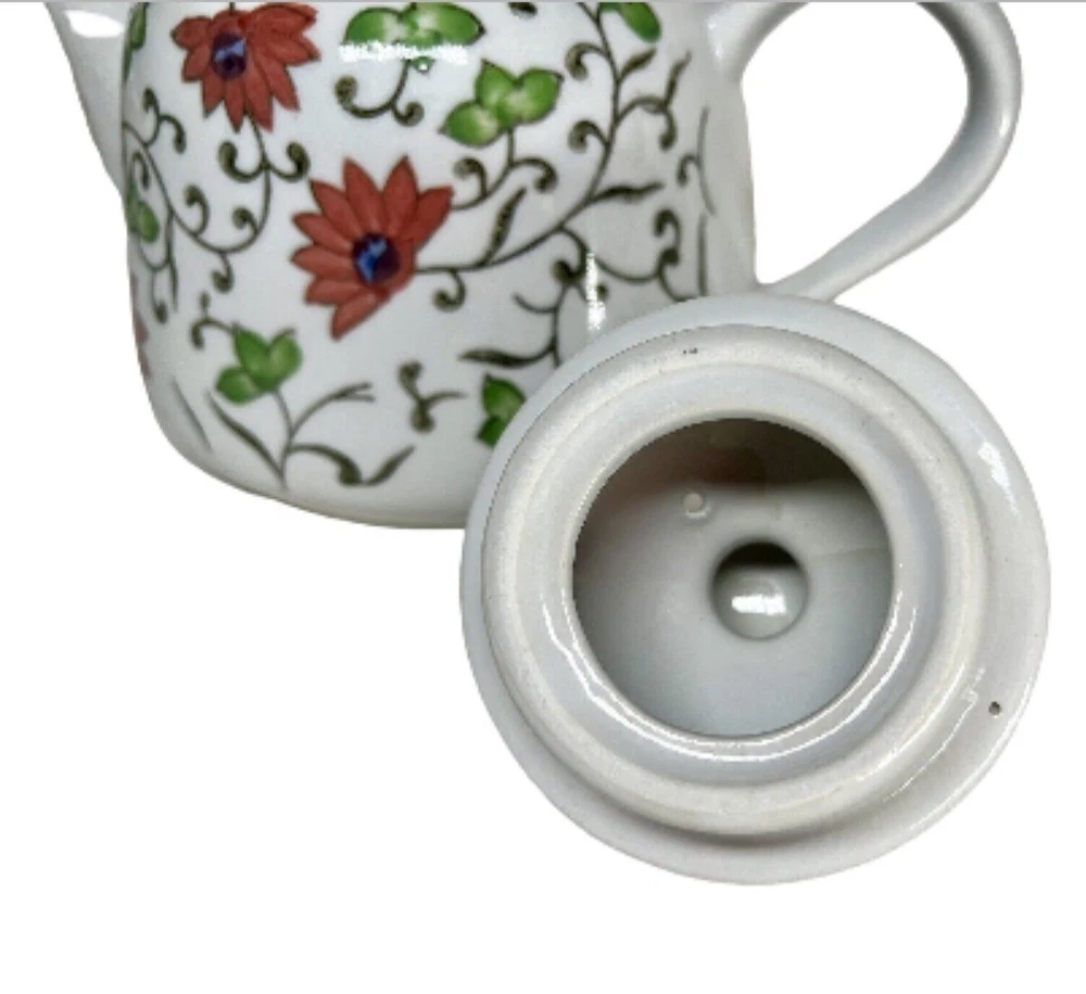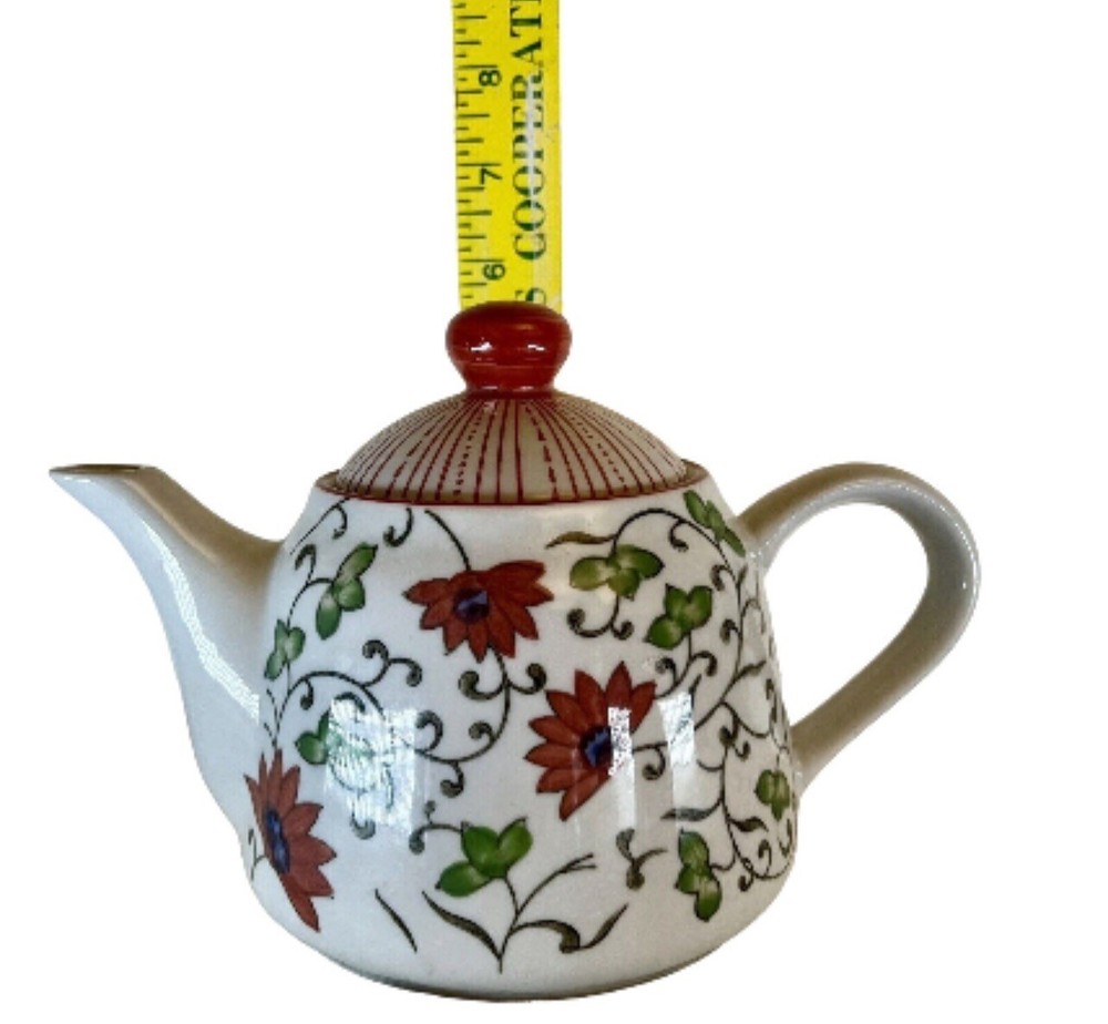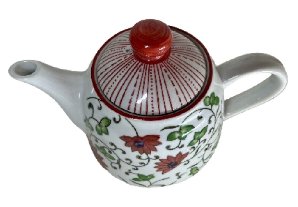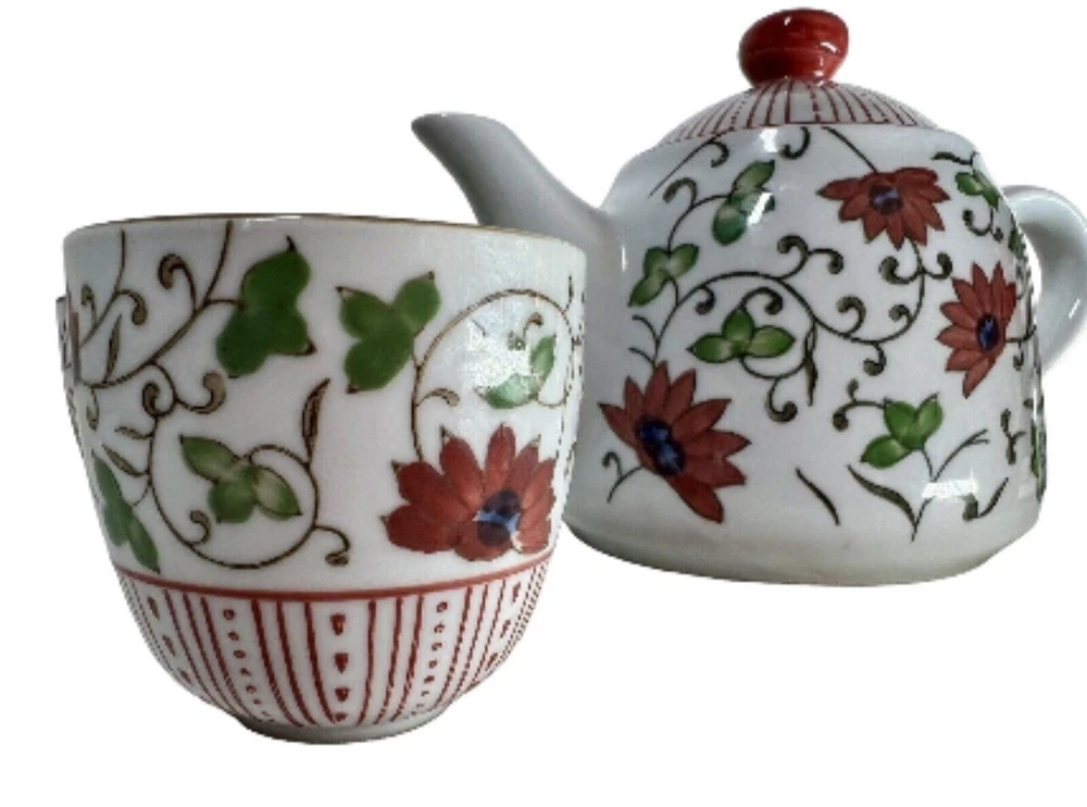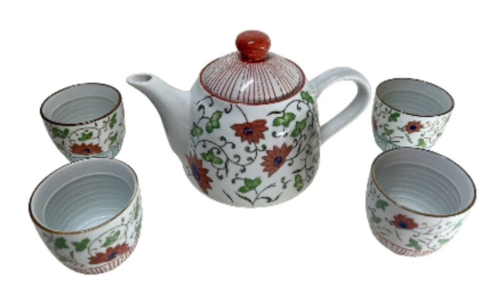 This elegant tea set tells a story of charm and sophistication. With its hand-painted floral motifs, the teapot and cups bring a touch of artistry to your gatherings. Enjoy the ease of dishwasher-safe and microwaveable convenience. • Hand-Painted Porcelain • Floral Design • Includes Teapot & 4 Cups • Dishwasher Safe • Microwaveable • Made in China • Exclusive for Pier 1 Imports Teacups measure 2.5 inches tall. Teapot measures 6 inches tall. Features: • Japanese • China • Hand Wash Condition: Pre-Owned Good Nice.. No chips Please See Pictures for Condition and Measurements