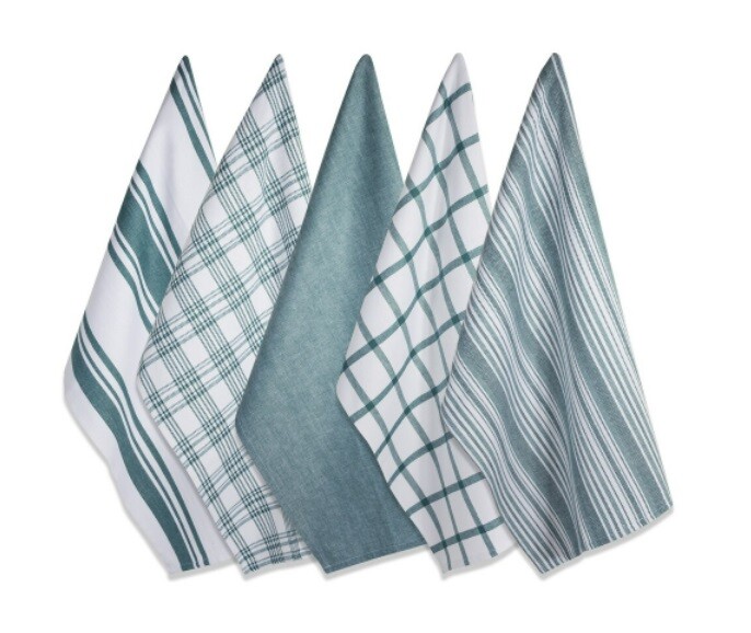 Keep your kitchen clean with this handy set of woven dishtowels. The quick-drying, lint-resistant cotton construction is highly absorbent to dry dishes or clean up spills, and the over-sized design is great for larger tasks. This set contains five towels with different patterns so you can mix and match them for a decorative look between uses. Country of Origin: Pakistan Ships to the lower 48 states only. No local pickup. Returns accepted for 30 days.