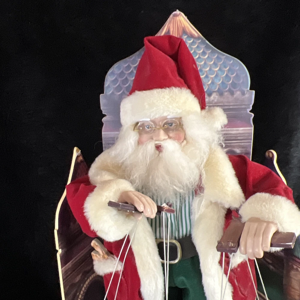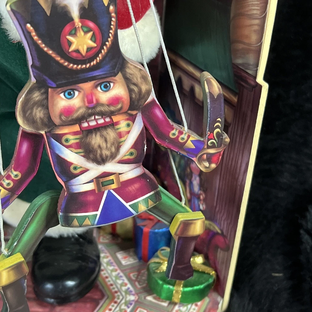 This vintage Telco Santa Puppeteer Marionette Puppet is a must-have for any collector of seasonal and holiday-themed items. The hand-painted multicolor design of this animated musical Santa puppet is sure to bring joy to your Christmas decor. With a variety of mixed materials and a unique pattern, this Santa puppet is a one-of-a-kind addition to your collection. The musical feature adds an extra touch of charm to this already delightful piece. Don't miss out on your chance to own this rare and special item. Without box so cute! Location back shelf top