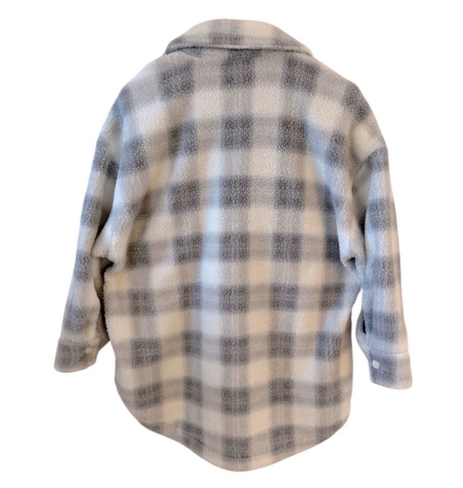 Keep warm and stylish with this cozy fleece shacket. Featuring a classic design in gray and white, it's perfect for any occasion. Size oX (14W) PTP:25” Length:29” Orders are packaged and shipped within 24 hours on non-holiday weekdays. Please read description and examine photos/measurements and ask any questions prior to purchase.