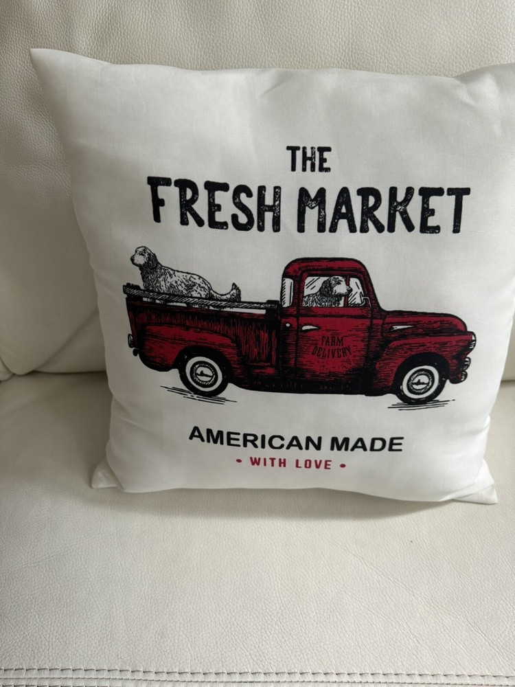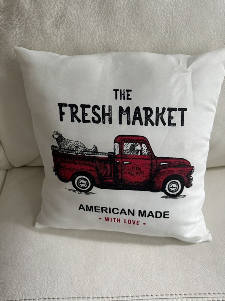 Add a touch of rustic charm to your indoor or outdoor space with this Mainstays throw pillow Featuring a classic red farm truck with adorable dogs, these pillows are perfect for fans of country living. Measuring 16 x 16 inches, these square-shaped pillows are made from durable polyester material that is sure to last. The multi-color design complements a variety of home decor styles, making these pillow a versatile addition to your collection. Whether you're looking to spruce up your living room or add a cozy touch to your patio furniture, these pillows are sure to impress.