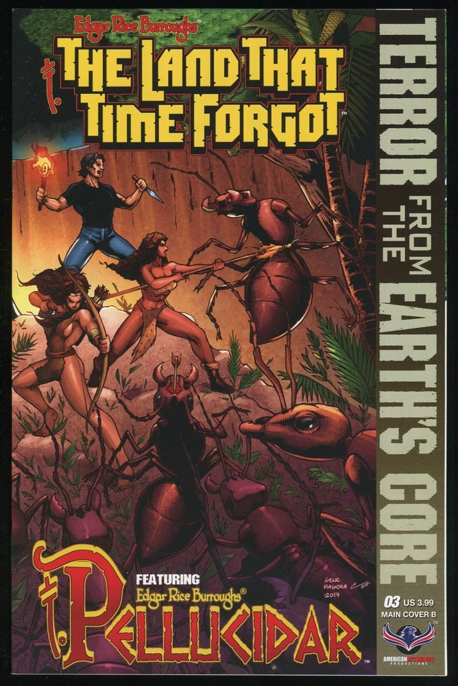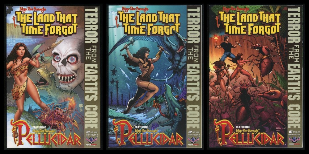 Edgar Rice Burroughs' The Land That Time Forgot / Pellucidar : Terror from the Earth's Core Comics Lot Featuring the Complete Main Cover B Collection . Awesome!! Writer: Mike Wolfer Artists: Gene Magora & Jazz Dela Cuesta Colorist: Beezzz Studios Letterer: Natalie Jane Main Cover #1B by: Mike Wolfer & Ceci De La Cruz Main Covers #2B,3B by: Gene Magora & Emmanuel Ordaz Torres Edgar Rice Burroughs' The Land that Time Forgot / Pellucidar : Terror from the Earth's Core Story/Spoilers: In issue #1B, Two of Edgar Rice Burroughs' greatest science fiction series meet at last, as the lost continent of Caspak from The Land That Time Forgot and Pellucidar , the prehistoric world at the Earth's core, collide in one colossal crossover! Stranded in time on the remote island continent of Caspak , Bowen Tyler, his future granddaughter Abby, the Galu warrior woman See-Ta, and the evil Baron von Schoenvorts and the crew of the German U-33 submarine have had their hands full fighting for survival against the rampaging dinosaurs of Caspak , as well as each other. But they are all about to be thrust into a war of worlds unlike anything ever seen, as the insidious inhabitants of Pellucidar find their way to the surface world, right in the heart of Caspak . The goal of the telepathic, prehistoric Mahars is the total subjugation of Caspak , a land that they seek to claim as their new kingdom, and with an invasion force of giant ants and an army of corpse-like, cannibalistic, subterranean creatures, they just might succeed! Officially licensed by Edgar Rice Burroughs, Inc., this is a series that any lover of dinosaurs, science fiction, lost worlds, and high adventure must not miss! Next in issue #2B, The titanic crossover clash between Edgar Rice Burroughs' worlds of Caspak and Pellucidar continues! The telepathic, pterosaurian Mahars have invaded the island continent of Caspak , sweeping across the prehistoric landscape in a reign of terror. Dian of Pellucidar must find a way to escape from the Mahar's clutches and unite the tribes of Caspak before the ruthless creatures exterminate everything on the continent! Finally in issue #3B, It's the cataclysmic conclusion of The Land That Time Forgot/ Pellucidar crossover, and an allout war on the prehistoric continent of Caspak ! The horrifying, winged Weiroo and insidious Mahars from Pellucidar have launched their earthshaking attack on tribes people and dinosaurs alike, and only See-Ta the Savage and Dian the Beautiful can rally Caspak's warring tribes in one final retaliatory attack against the invaders! Comics lot contains : Edgar Rice Burroughs' The Land That Time Forgot / Pellucidar : Terror from the Earth's Core {Complete Main Cover B Collection} (2017) Issues #1-3 . American Mythology Comics are bagged & boarded and will be carefully / securely packaged then shipped via USPS Priority Mail to ensure that it arrives to you perfectly and quickly. All First Printings Publisher: American Mythology Publication Date: 2017 Format per comic: FC, 32 pages, Comic, 10.25" x 6.5" UPC: 856091006304 Collectible Entertainment note: Comics #1B,2B,3B are in Fine to Very Fine + condition . Very Nice Set ! Please See Scans!! A must have for any serious Pellucidar and/or Edgar Rice Burroughs collector / enthusiast . A fun & entertaining read . Recommended. Please read return policy. Please check out all my other Punisher or Tron or Parody or King Kong or Superman or Batman or X-Files or Ralph Snart or 3-D or TMNT or X-Men or Sherlock Holmes or Mummy or Frankenstein or Dracula or Sergio Aragonés or Groo or Tarzan or Conan or Magazines or Horror or Werewolf or Zombie or Frank Frazetta or GI Joe or War or Judge Dredd or Infinity or Marvel Secret Wars or Crisis on Infinite Earths or Spawn or Venom or Carnage or Toxin or Kolchak or Mad Max or Kolchak or Star Trek or Starship Troopers or Science Fiction or James Bond or Adventure Time or Movie Adaptations or Spider-Man or Flash Gordon or Richard Corben or Indiana Jones or Star Wars or Jurassic Park or Dinosaurs Attack or Mars Attacks or Planet of the Apes or Godzilla or Thing or Robocop or Aliens or Predator or Terminator listings by visiting my store and typing Punisher or Tron or Parody or King Kong or Superman or Batman or X-Files or Ralph Snart or 3-D or TMNT or X-Men or Sherlock Holmes or Mummy or Frankenstein or Dracula or Sergio Aragonés or Groo or Conan or Tarzan or Magazine or Horror or Werewolf or Zombie or Frank Frazetta or GI Joe or War or Judge Dredd or Infinity or Marvel Secret Wars or Crisis on Infinite Earths or Spawn or Venom or Carnage or Toxin or Mad Max or Kolchak or Star Trek or Starship Troopers or Science Fiction or James Bond or Adventure Time or Movie or Spider-Man or Flash Gordon or Richard Corben or Indiana Jones or Star Wars or Jurassic Park or Dinosaurs Attack or Mars Attacks or Planet of the Apes or Godzilla or Thing or Robocop or Aliens or Predator or Terminator in the store search engine.