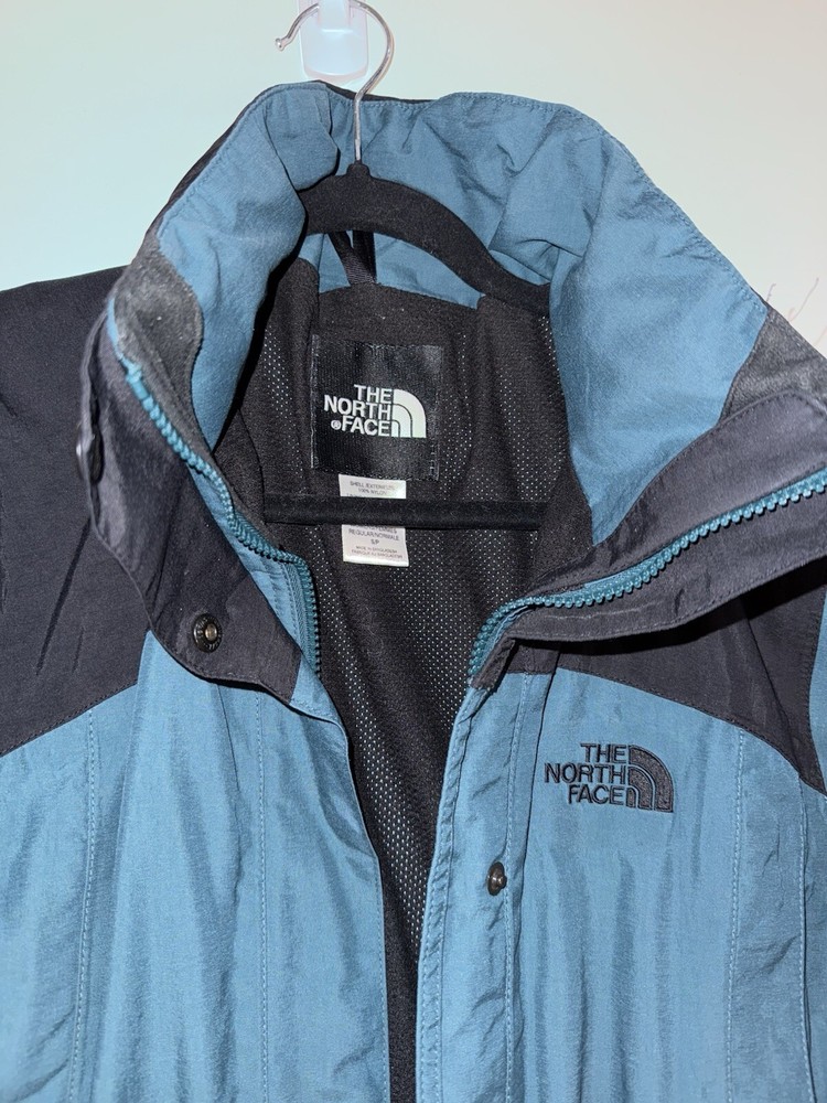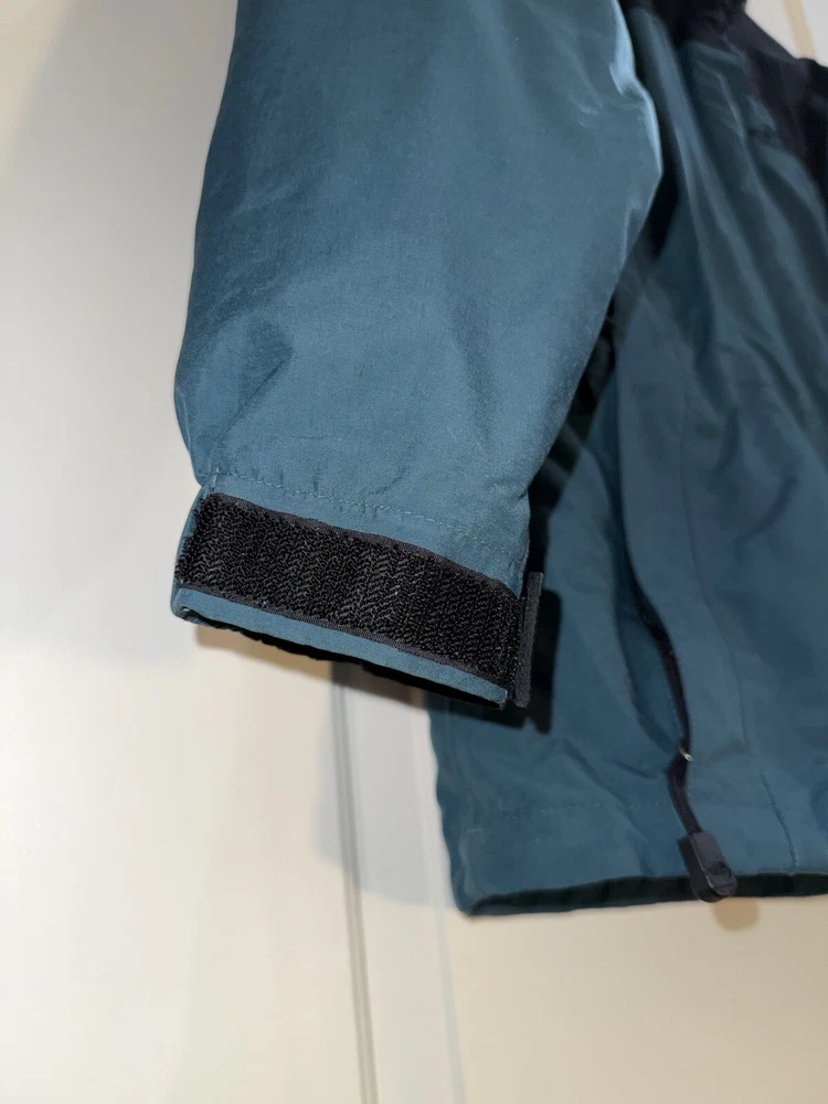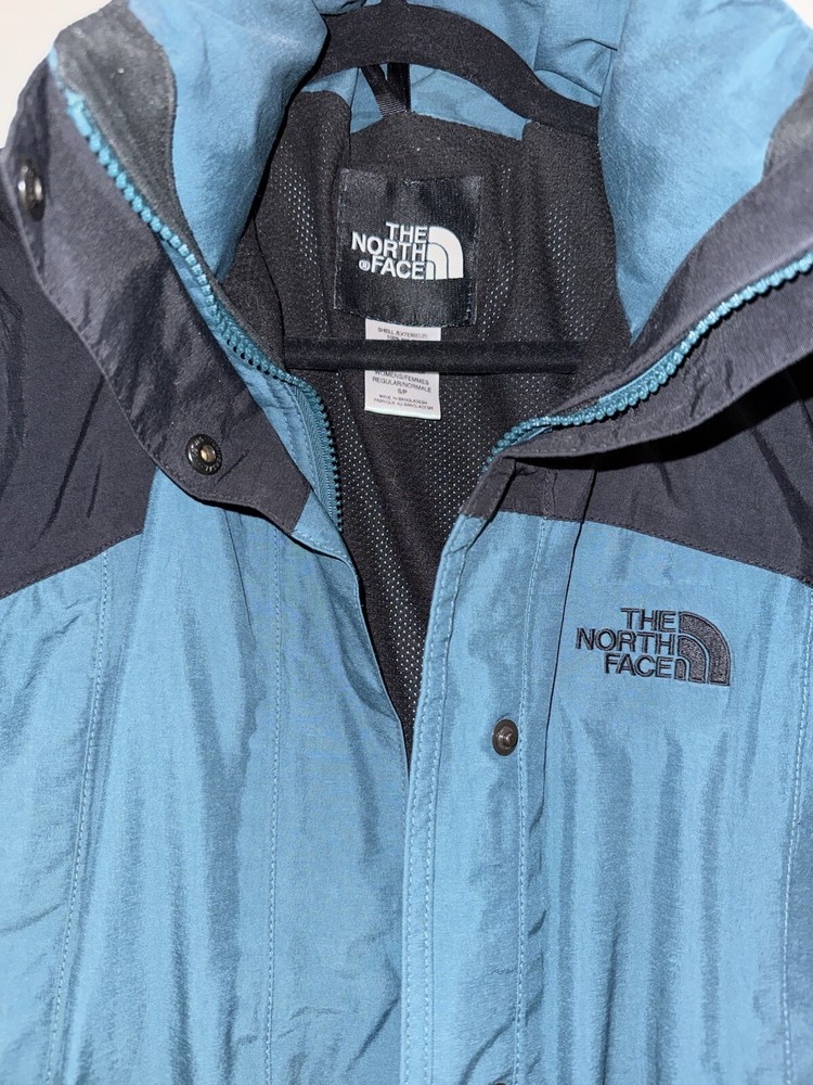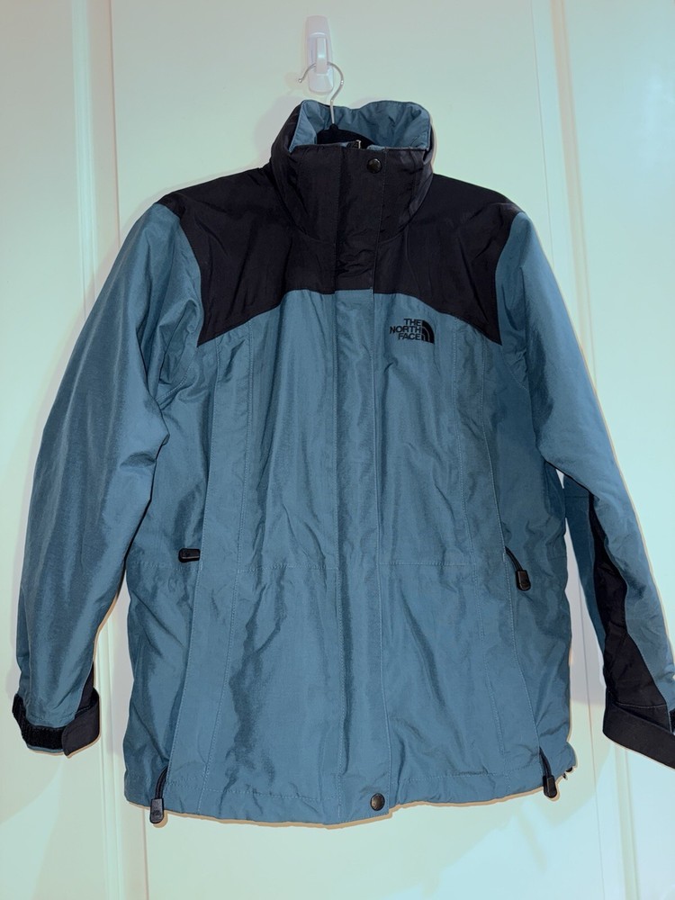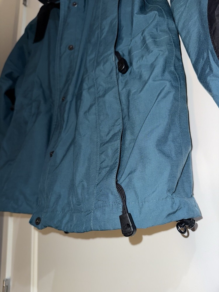 This jacket is a must-have for any woman's wardrobe. It features a softshell fabric type and is both water-resistant and wind-resistant, making it perfect for any outdoor activity. The North Face Hydrenaline jacket also has a full zip closure, zipped pockets, and is lightweight, making it suitable for all seasons. The teal color and solid pattern add a touch of style to the jacket, while the button, zipper, embroidered, and logo accents make it unique. The jacket is vintage and comes in size S, with a regular size type. It is suitable for travel, casual wear, and workwear, making it a versatile addition to any wardrobe.