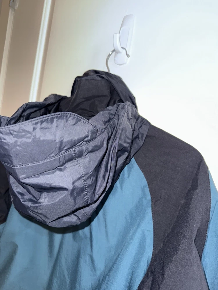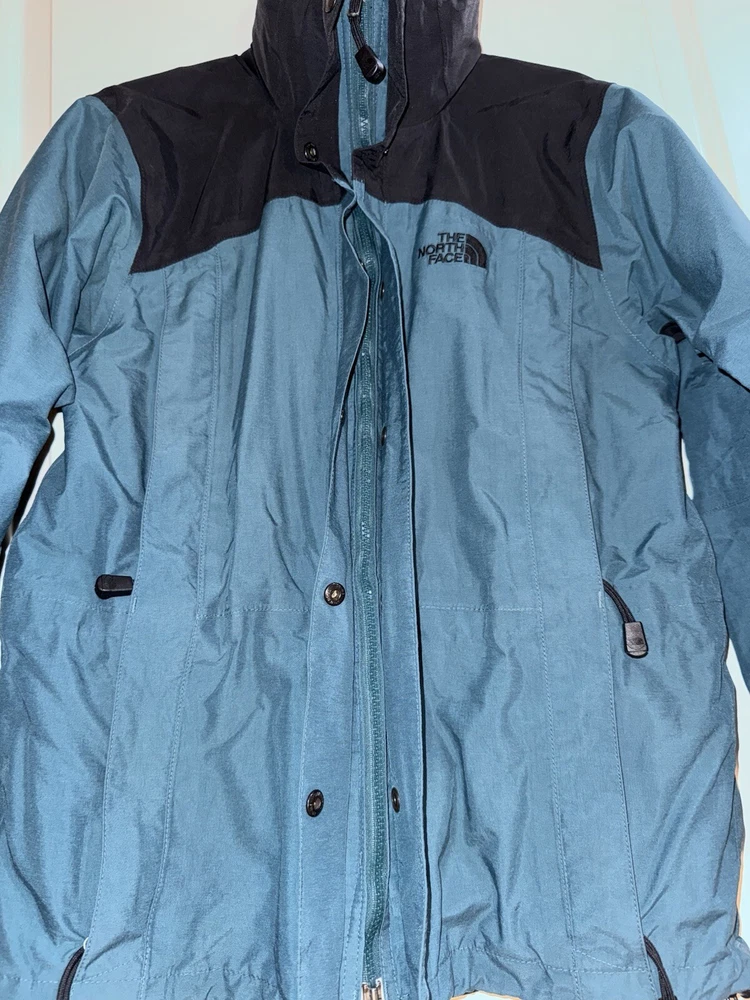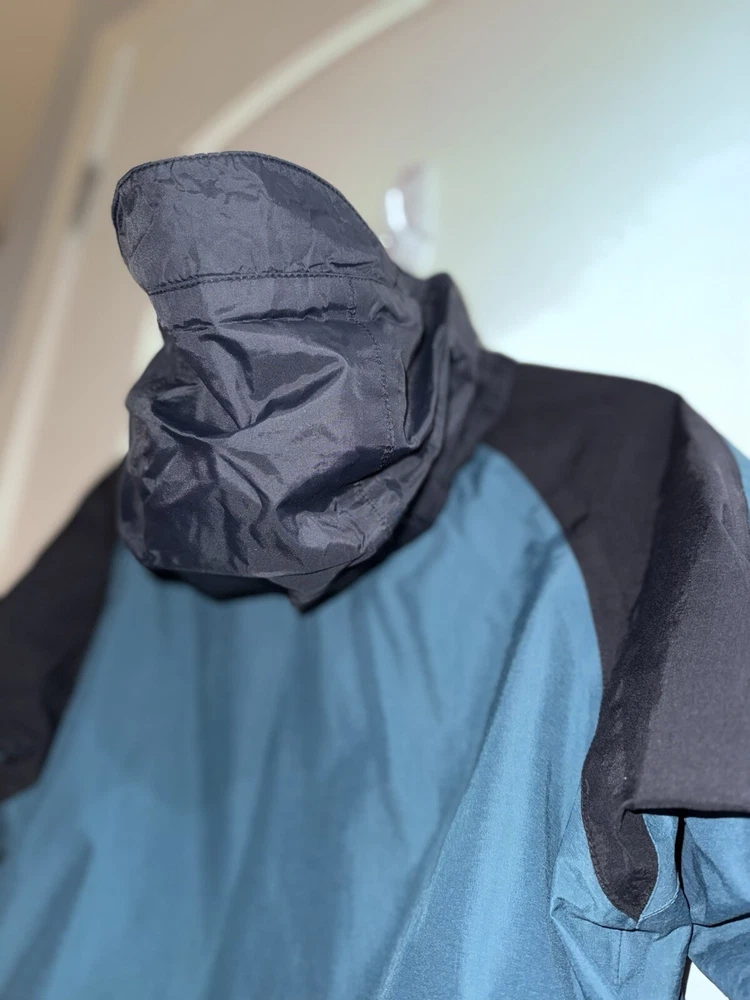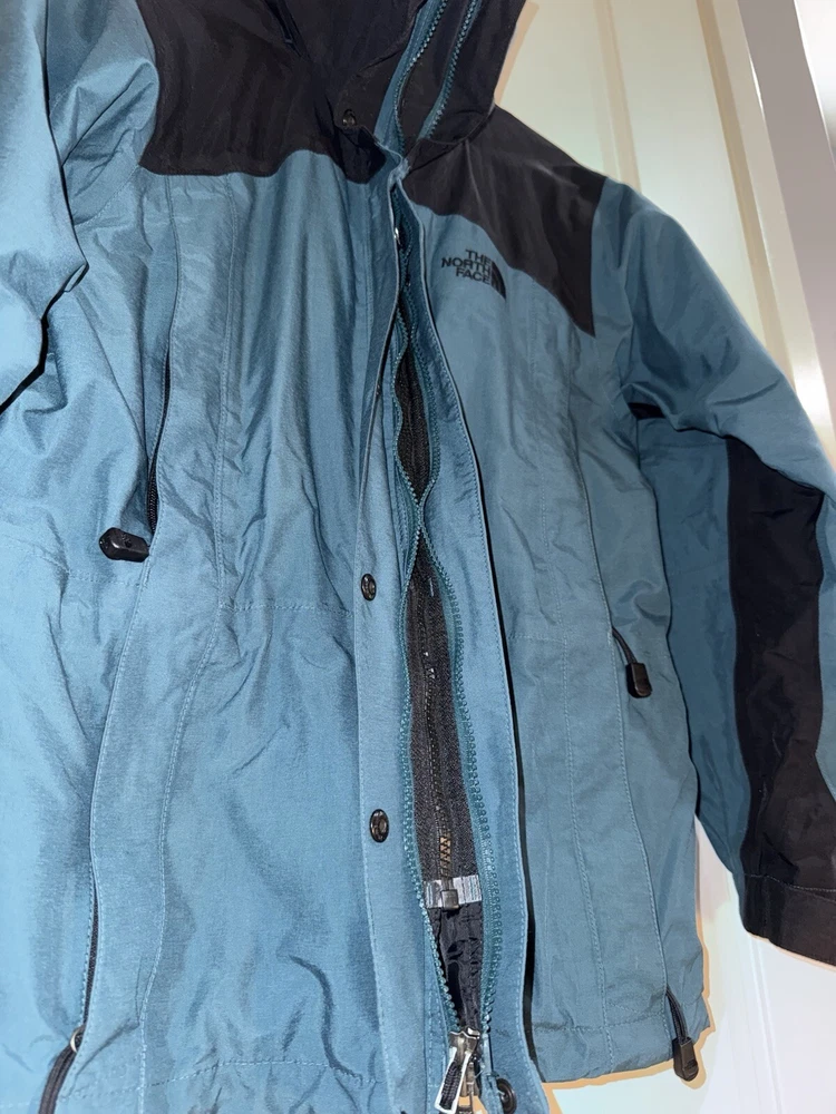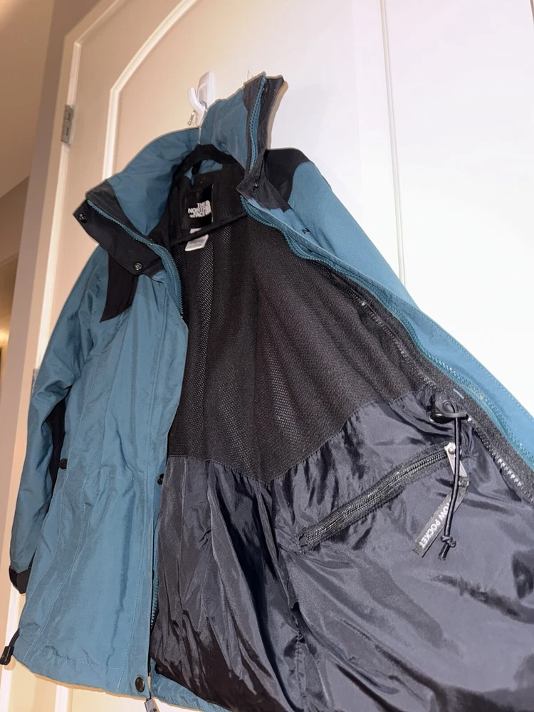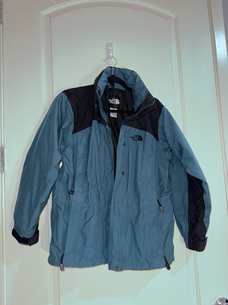 This jacket is a must-have for any woman's wardrobe. It features a softshell fabric type and is both water-resistant and wind-resistant, making it perfect for any outdoor activity. The North Face Hydrenaline jacket also has a full zip closure, zipped pockets, and is lightweight, making it suitable for all seasons. The teal color and solid pattern add a touch of style to the jacket, while the button, zipper, embroidered, and logo accents make it unique. The jacket is vintage and comes in size S, with a regular size type. It is suitable for travel, casual wear, and workwear, making it a versatile addition to any wardrobe.