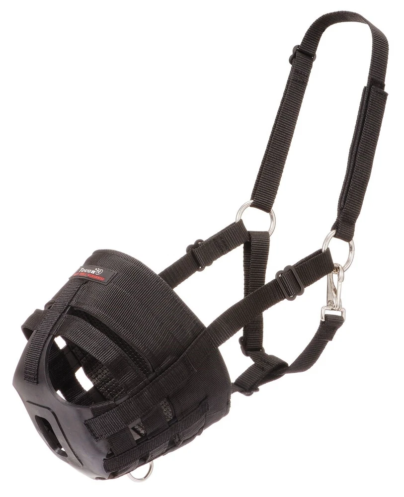 I have had the muzzle over a month and it is very effective. I like all the breathing holes and the material is holding up well.