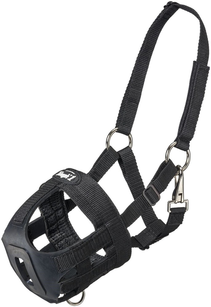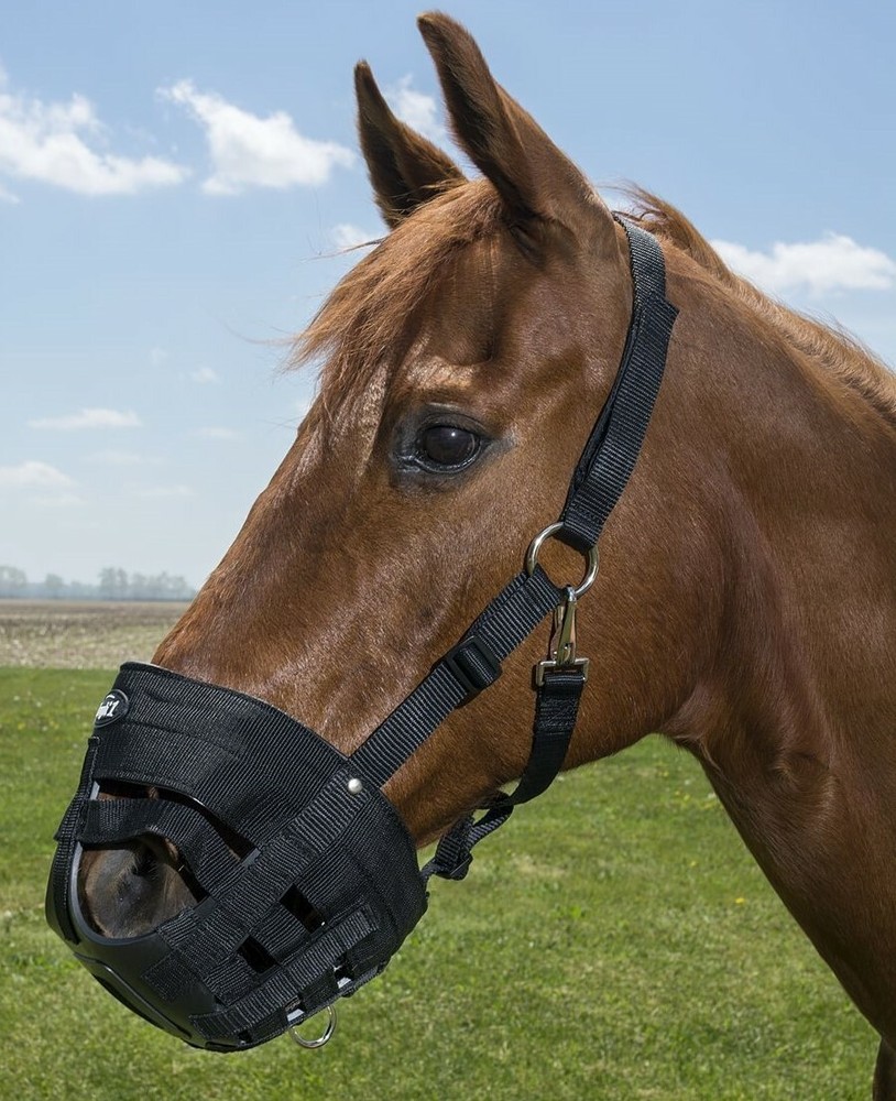 Best grazing muzzle. Fits my horse nicely. Doesn't cause any hair loss,sores on face ,nose cheeks, chin. He drinks water with no problem. Water empties from muzzle quickly.Highly recommend it. The grazing muzzel cleans up quick with water and a brush.Dries quick. Faster outside.