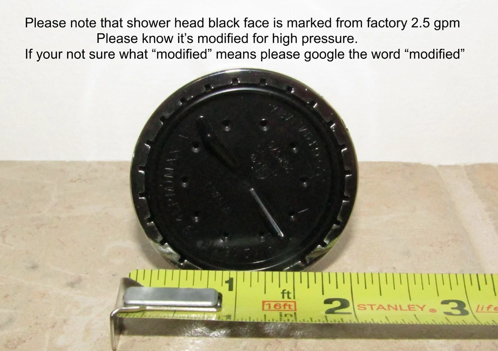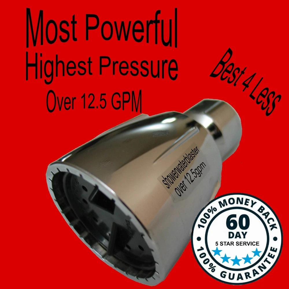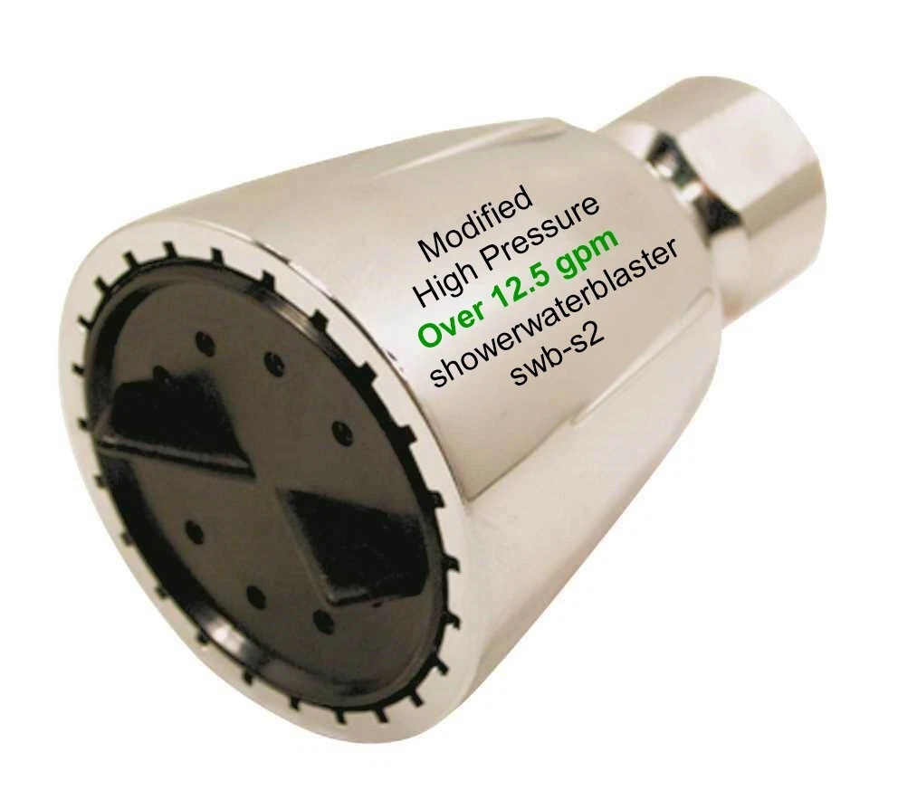 The Original showerwaterblaster All Shower Heads Are Brand New Removed From Package For Modification Bulk Shipping (No Retail Package) Brand New - Bulk Shipping, No Retail Packaging, Only Open for Modification Procedure Modifying Shower Head from 2.5 to 12.5 gpm Brand New - Professionally Modified Multiple Areas For High Pressure That Really Works As Described Model s2 The Original showerwaterblaster High Pressure Shower Head Model s2 Ready to install right out of the package, includes teflon tape Bored Open to 21/32" Modified For More Water – Higher Pressure - 12.5gpm Only Commercial Grade Superior Quality Shower Heads Are Used Then Modified for High Pressure The Interior of the Head Also Modified to Accommodate the High Water Flow The End Results are High Pressure Water Flow Chrome Body with Black Face ABS Thermoplastic 2" head, 30 degrees swivel adjusts from a wide fine spray to a narrower course spray Easy to install just remove your old shower head an screw on your new shower head To avoid breaking shower head it only needs to be hand tighten 60 day no risk no hassle returns - like it or return for refund Buy With Confidence...Fast shipping 6 days a week We understand the value of trust If you are unsatisfied with your order, please contact us and we will make it right for you.