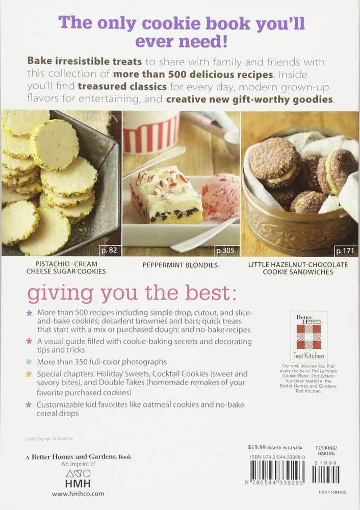| Synopsis | With more than 500 recipes, Better Homes & Gardens The Ultimate Cookie Book, Second Edition is a compendium of every kind of cookie a home baker could want, including must-have classics and fresh new flavor twists., More than 500 recipes for every kind of cookie, including must-have classics and fresh new flavor combinations This one-stop source, packed with more than 250 inspiring photos, gives home bakers a huge collection of 500 irresistible cookie recipes for every occasion. There are tried-and-true classics to pair with a glass of milk, such as Chocolate Chunk Cookies; treats perfect for holiday celebrations like Big Soft Ginger Cookies; and on-trend sweet-and-savory delights like Berry-Sage Thumbprints. A welcome variety of options includes Express cookies (quick recipes that start with a mix) and Double Takes (homemade versions of iconic store-bought favorites), and an informative Cookie Basics section covers topics such as proper measuring, equipment, decorating, and packaging. With this book, bakers at all levels will find endless inspiration for everyday goodies and year-round entertaining. |