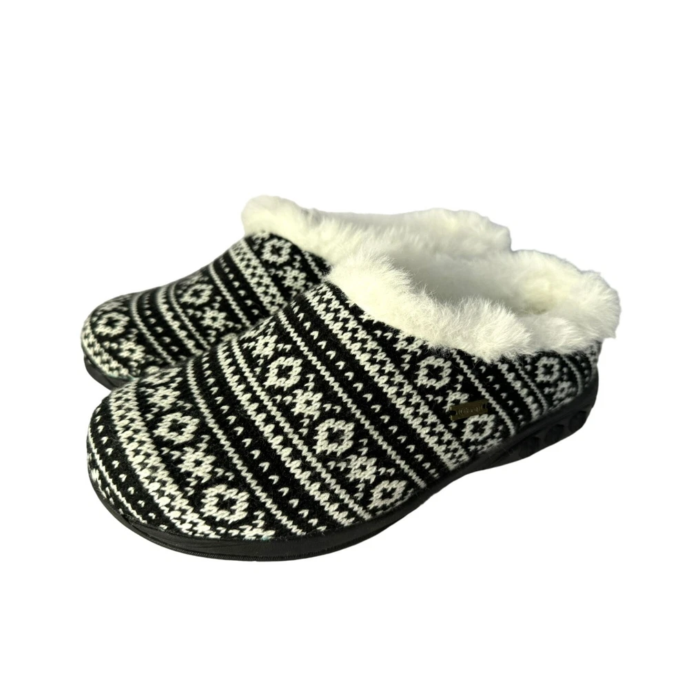 Therafit Adele Womens Cozy Knit Comfort Slipper New without Box SIze 9... Runs a Little Big Slip-On Inoor/Outdoor Breathable Tweed Uppers Faux Fur Lining Built-In Toe Box for Added Protection Genuine Rubber Outsole Full Length Lining 1.5" Heel Height Superior Arch Support Condition: New Without Box