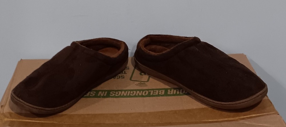 Therapedic Comfort Slipers Suede Cover Cozy Furry Inside Size M Brown Color. Condition is Pre-owned. Shipped with USPS Priority Mail....