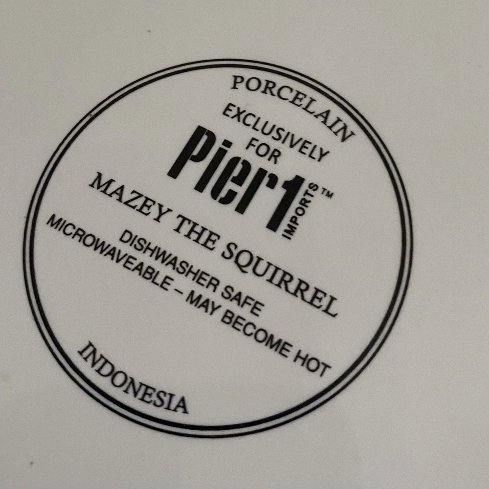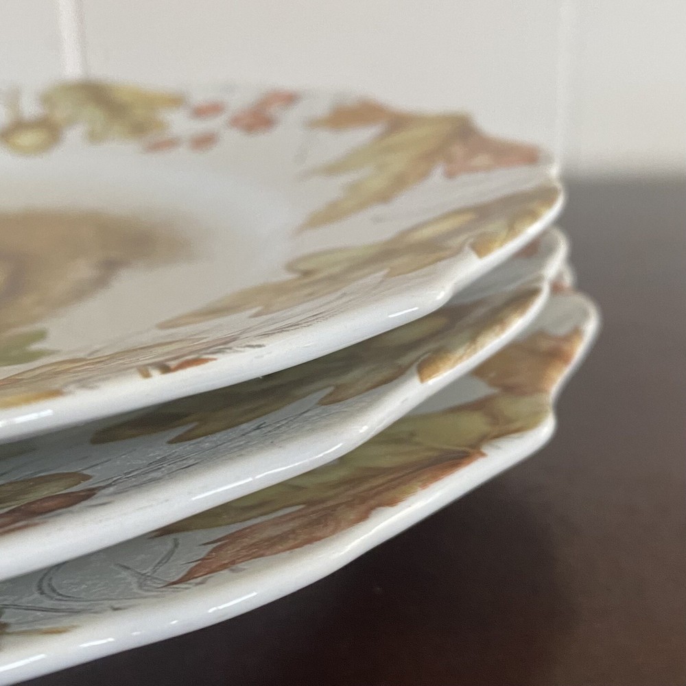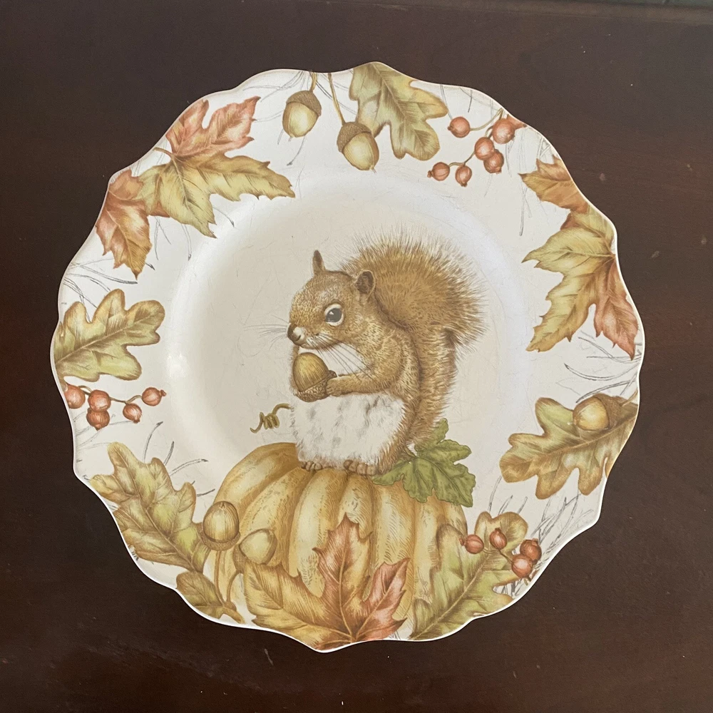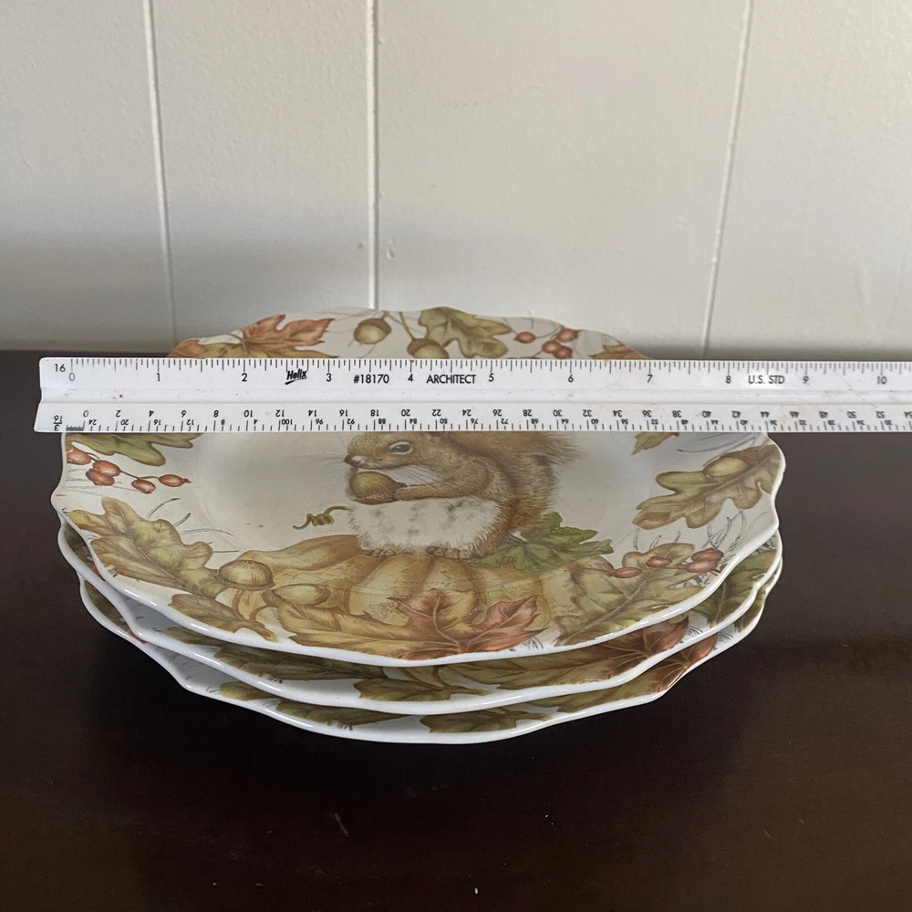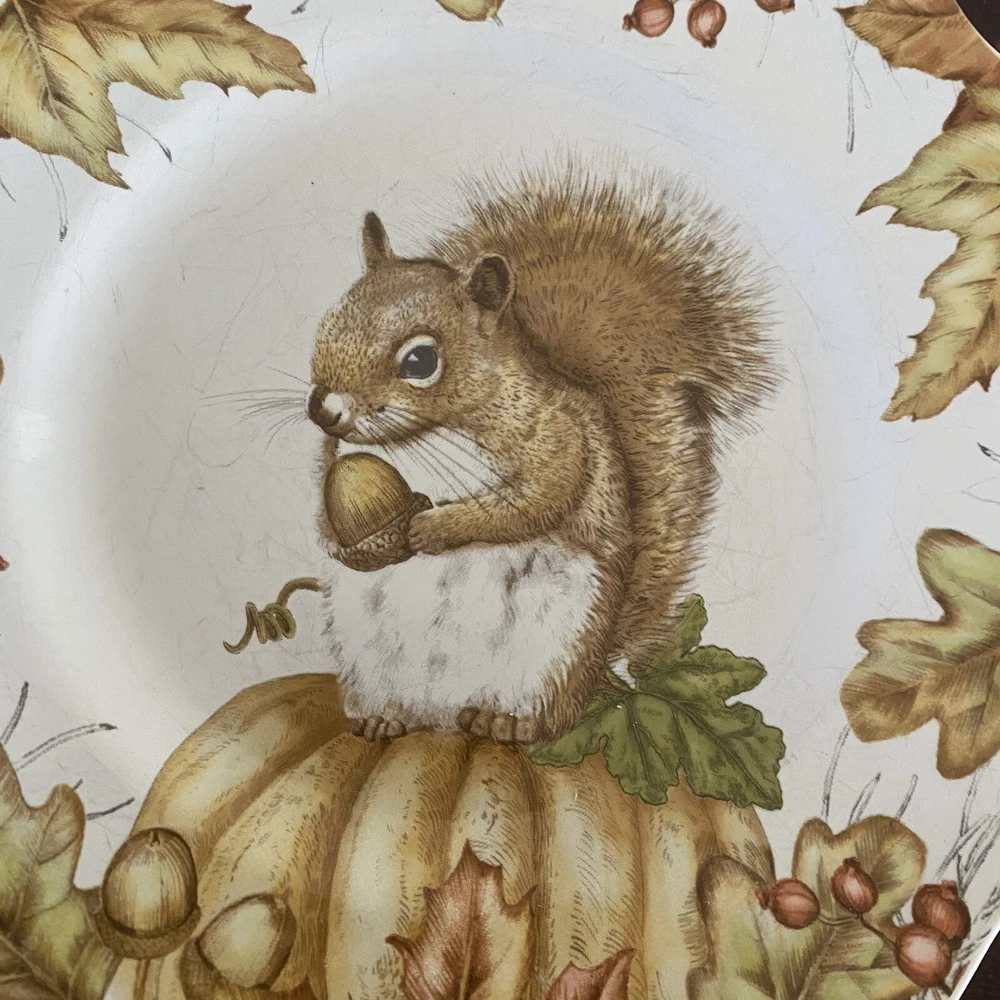 Three (3) Pier 1 Mazey the Squirrel Collection 8.5” Salad Plates Utensil Marks. There are no chips or cracks. There ARE utensil marks. PLEASE see all photos for condition.