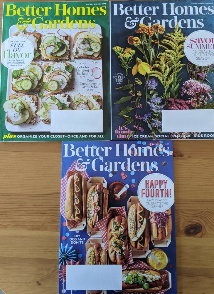 This listing is for three issues of Better Home & Gardens from 2019, in excellent condition, to help you get ready for summer! See photos for specific contents....