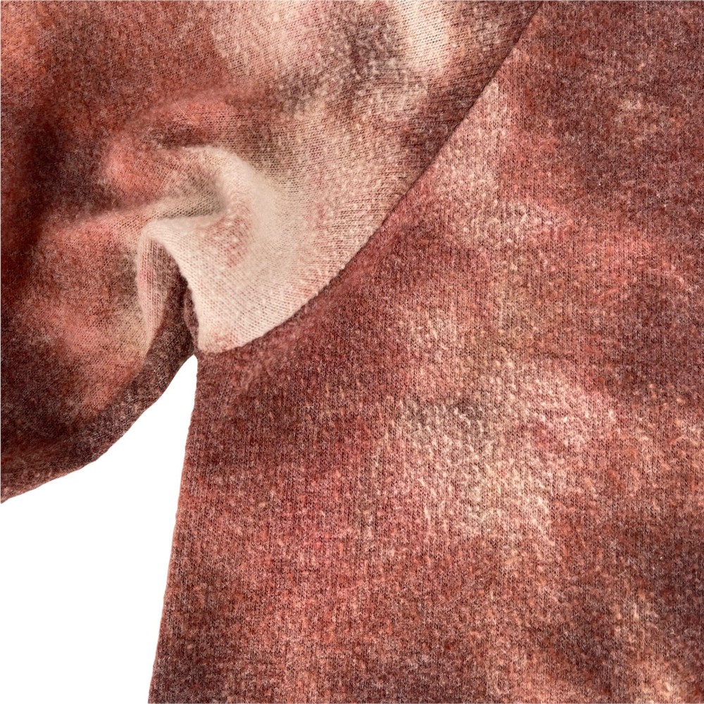 Tie Dye Sweatshirt Boat Neck Red Cozy Inside Out Fuzzy Material Athleisure Lounge Casual Top Long Sleeve Basic 143 Story Brand Relaxed Fit Women's Size Medium Good pre-owned condition with minimal signs of gentle use. Approximate Measurements: Chest: 22" Flat Lay Length: 28"