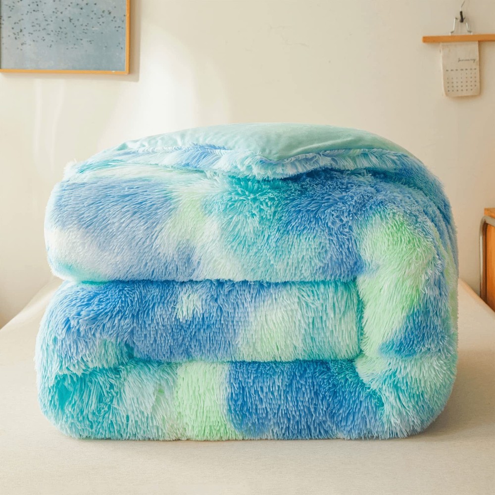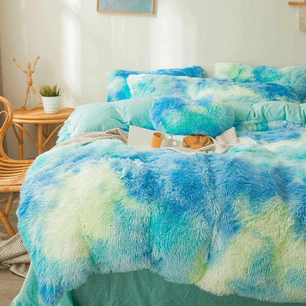 This comforter set is so soft and cozy—it feels like sleeping on a cloud! The tie-dye mint color is gorgeous, and the faux fur adds a luxurious touch. The included pillowcases complete the look, making my bed feel like a dreamy retreat. Perfect for staying warm and stylish!