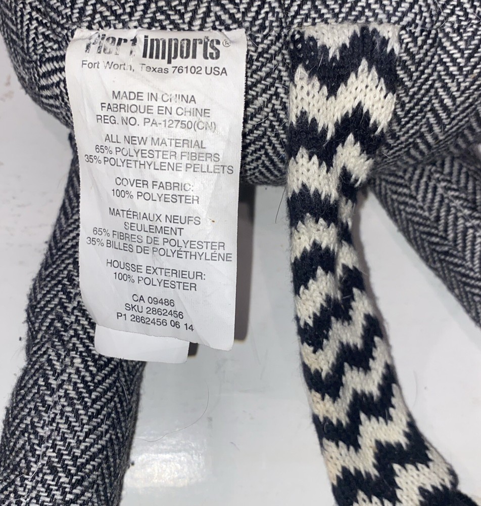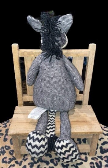 Introducing the Tilly Knit Herringbone Zebra/Donkey plush animal toy from Pier One Imports. This adorable donkey-inspired stuffed animal is perfect for any occasion and is made with high-quality materials to ensure long-lasting enjoyment. The medium-sized toy measures 21 inches and features a striking black and white color scheme with a unique donkey-zebra character family. Whether you're looking for a new addition to your stuffed animal collection or a gift for someone special, the Tilly Knit Herringbone Zebra is sure to please. Bring home this charming and playful toy today and add a touch of whimsy to your life.