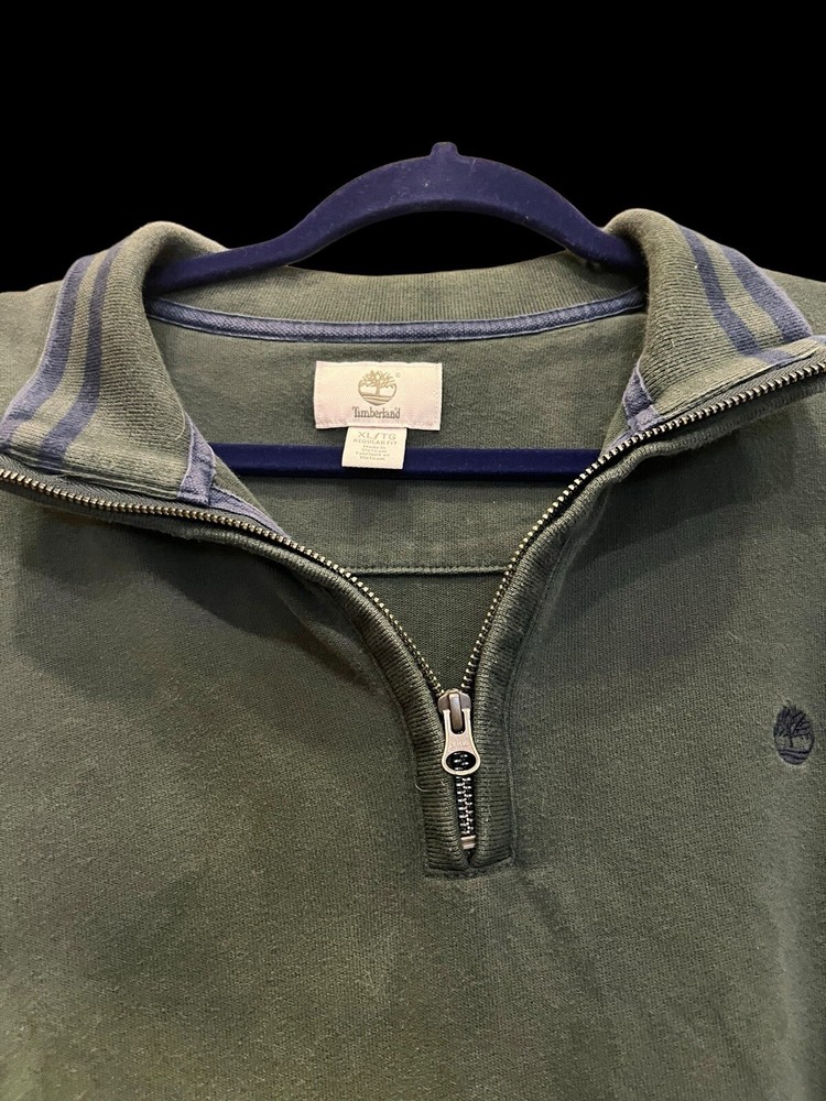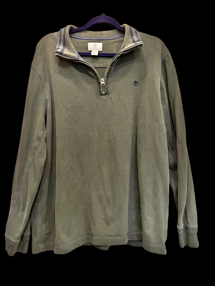 Elevate your wardrobe with this Timberland pullover sweatshirt in a deep green shade. Crafted in Indonesia, this sweatshirt features a size XL fit with a regular cut, making it an ideal choice for men who want to stay comfortable and stylish. The sweatshirt is perfect for the winter, fall, or spring seasons and can be worn for a casual day out or as part of your activewear collection. The sweatshirt comes with a 1/4 zip feature, long sleeves, and accents such as an embroidered logo and zipper closure. It is made from high-quality materials and is designed to last. With its versatile style and comfortable fit, this Timberland sweatshirt is a must-have for any fashion-conscious man.