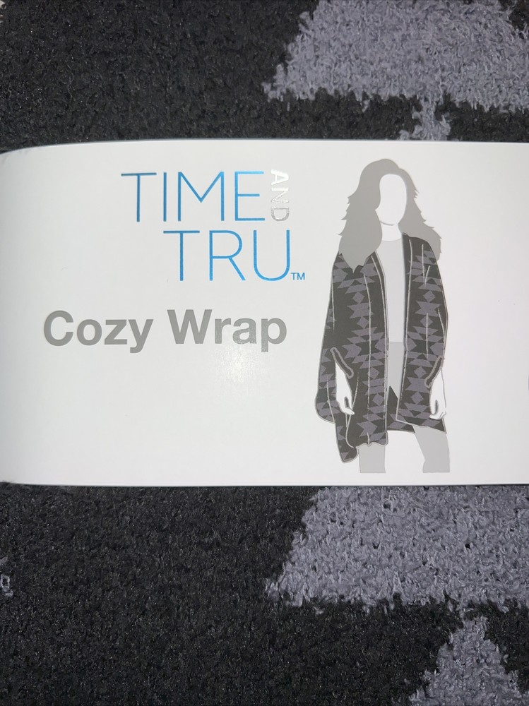 Time & Tru Cozy Wrap Black & Gray One Size Fits All NWT Extremely Soft!.
