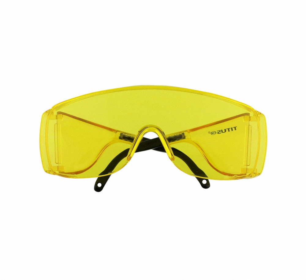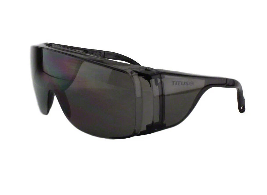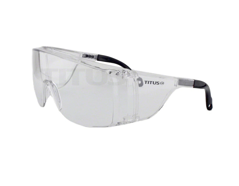 TITUS OTG Fit Over RX Safety Glasses with Optical Grade Poly-Carbonate Lenses, Impact Resistant, Anti-Glare, UV400 blocks 100% Of harmful UVA & UVB Rays ANSI & CE Approved. Meets and Exceeds ANSI Z87+ Standards (marked on stem), Meets and Exceeds CE EN 1836 (not marked) always SVCH Free Adjustable Length: 5 ¾”–6 1/8", 2 3/8” Tall X 6 1/4" Wide, TITUS Since 2009