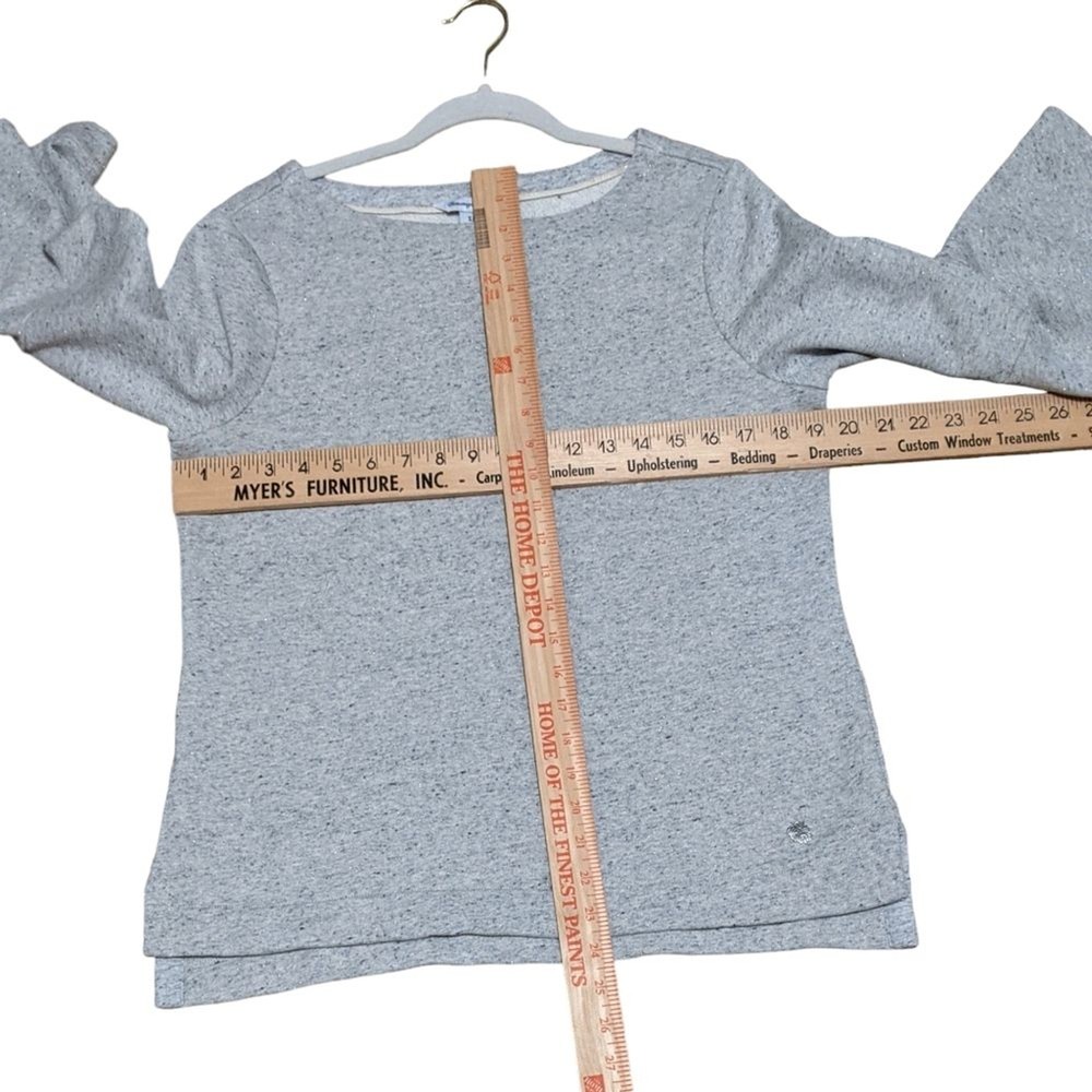 Tommy Bahama Gray Long bell Sleeve jersey Sweater speckles slight boat neck soft cozy Small Tommy Bahama Gray Sweater jersey 3/4 Bell Sleeve Slight Boat Neck Cotton, polyester, metallic blend Measurements are approximate, lying flat Gently used, good condition, smoke free home