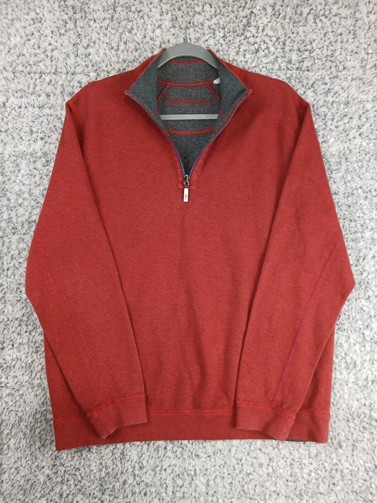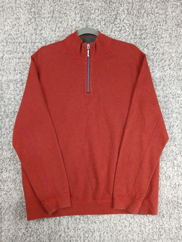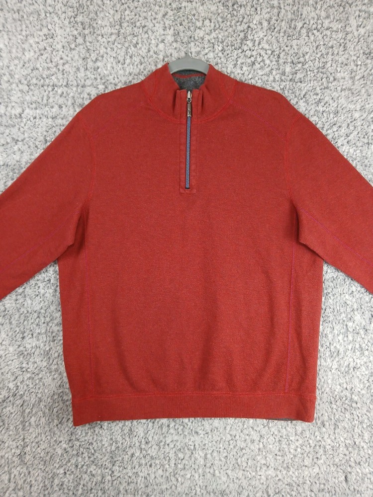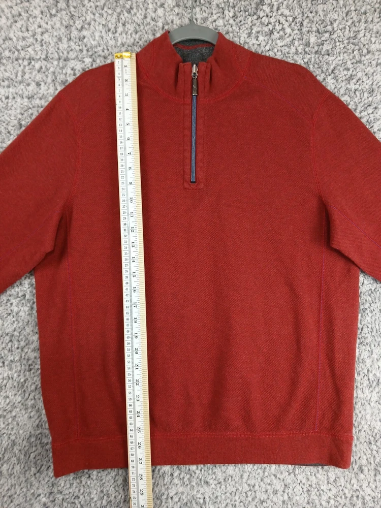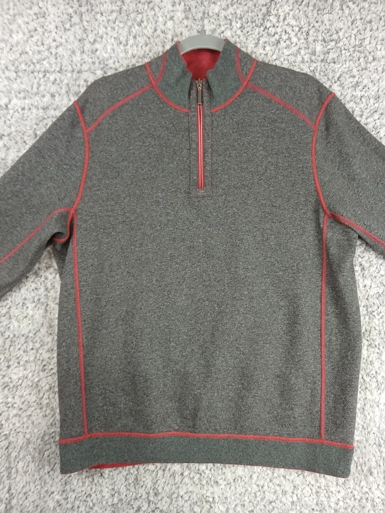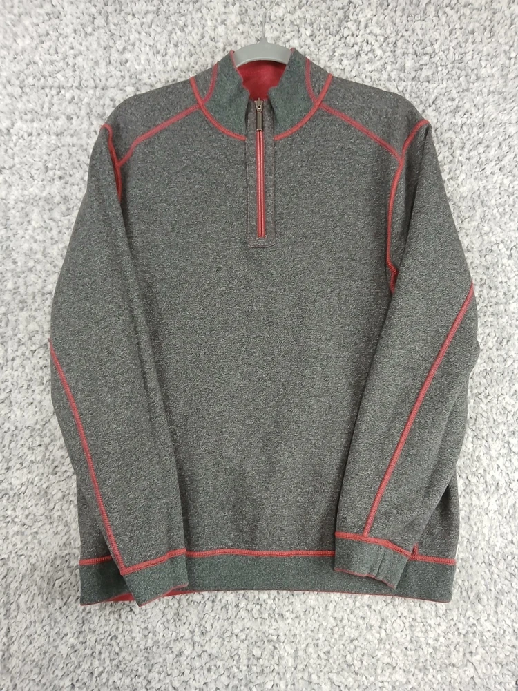 Item details: Tommy Bahama Reversible Sweater Mens Size Medium Quarter Zip Red Gray 100% Cotton Cozy Item condition: Item is pre-owned in great condition, no holes, stains or notable flaws. Item size / measurements: Item is Size Medium, please check photos in this listing for measurements. Shipping details: Item will ship USPS Ground Advantage 2 - 5 days. We typically ship out items next business day so you can expect a quick delivery. Will combine shipping. Additional information: All clothing is washed / cleaned per eBay's policies. All clothing listed is inspected for flaws and any flaws found will be listed in description. All clothes are stored in pet free smoke free environment. If you have any questions feel free to message us, we check messages daily and will get back to you ASAP. Please ask for more detailed pictures or measurements before you purchase an item to avoid any issues. Please contact us in the event of an issue, we will do our best to resolve any concerns. We strive for 100% satisfaction & feedback!
