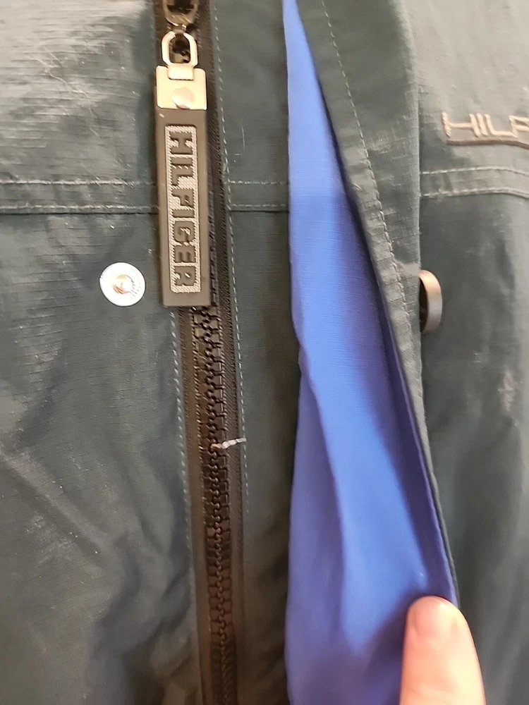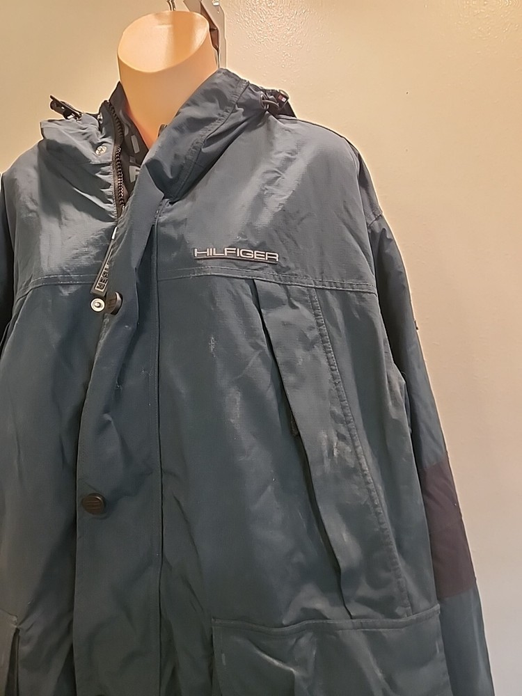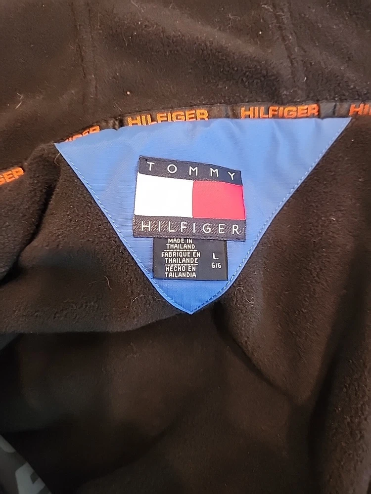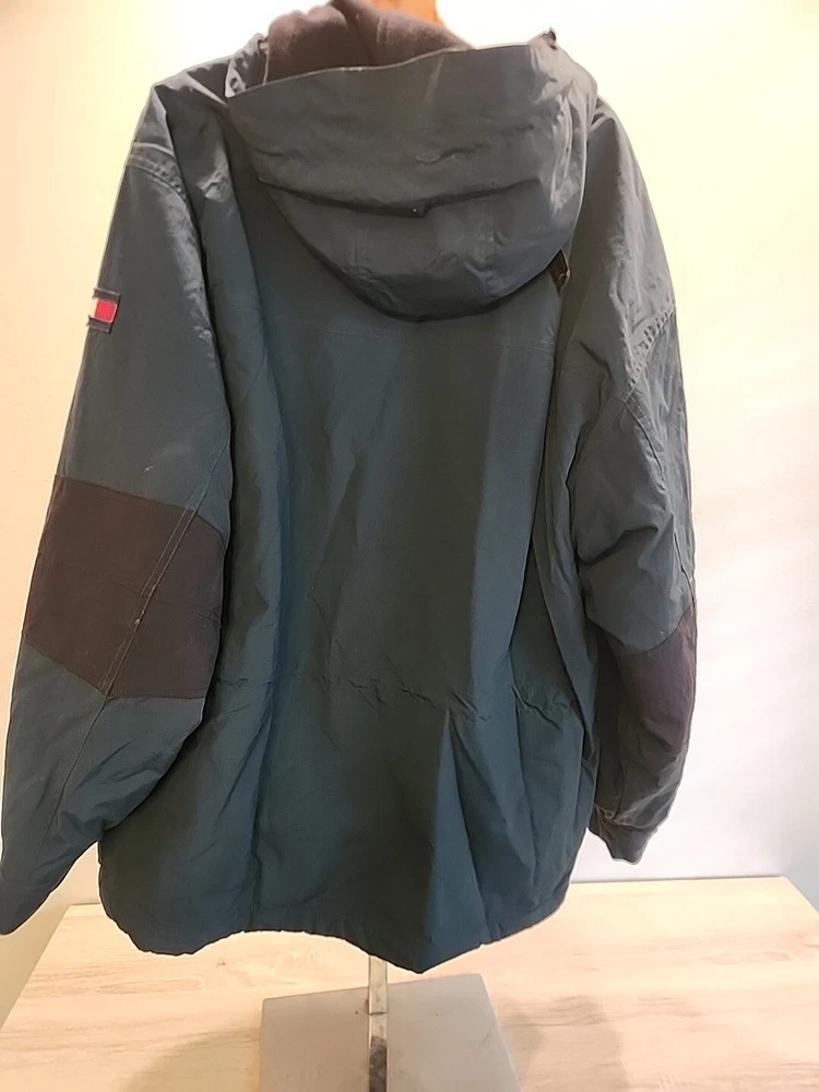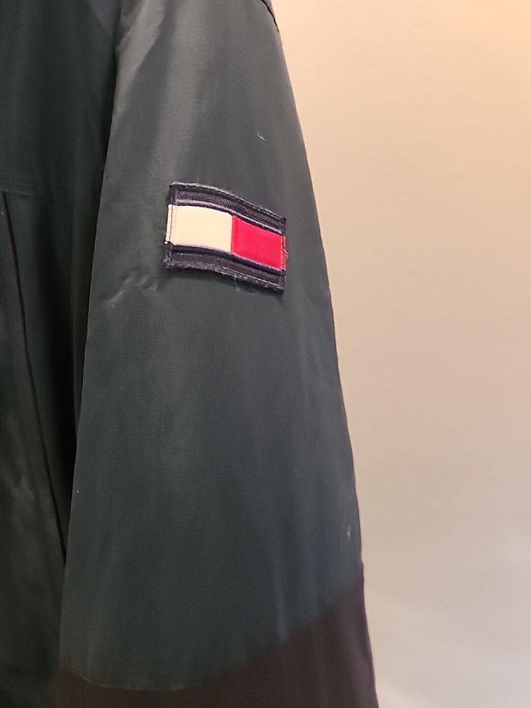 Elevate your style with this classic Tommy Hilfiger Sailing Jacket. The jacket features a full zip closure and a hood to keep you protected from the weather. The outer shell is made of durable polyamide material and the lining is made of soft polyester material, making it comfortable to wear for any occasion, whether it's casual or for work. The jacket is windproof and waterproof, making it perfect for all seasons, whether it's winter, summer or spring. This unisex adults' jacket is designed with a regular fit and is available in size L. The jacket has a timeless green color and a classic pattern, making it a versatile addition to any wardrobe. The jacket is machine washable and easy to care for. Sail in style with this Tommy Hilfiger Sailing Jacket!